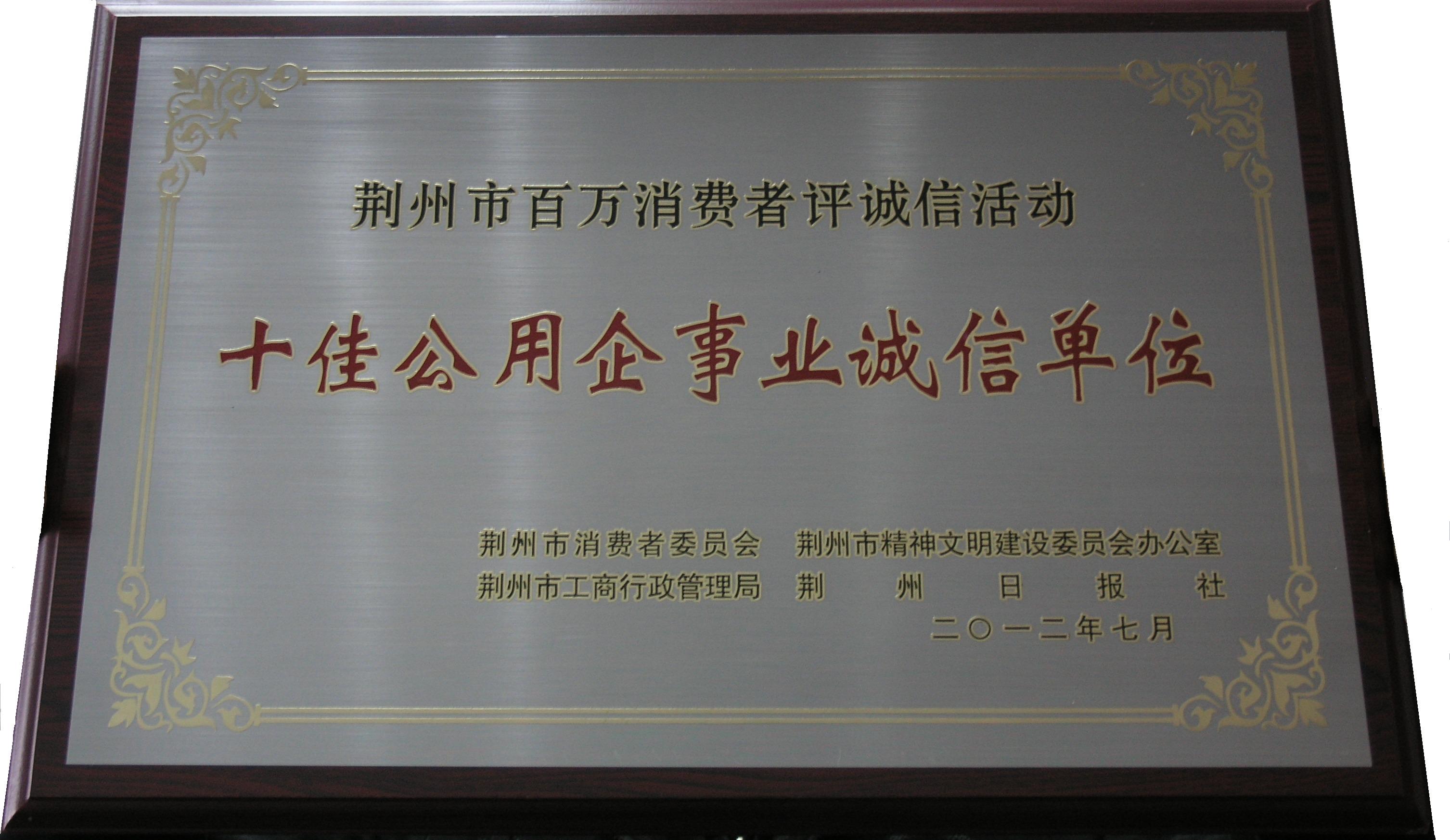 荆州市十佳公用企事业诚信单位(市级)