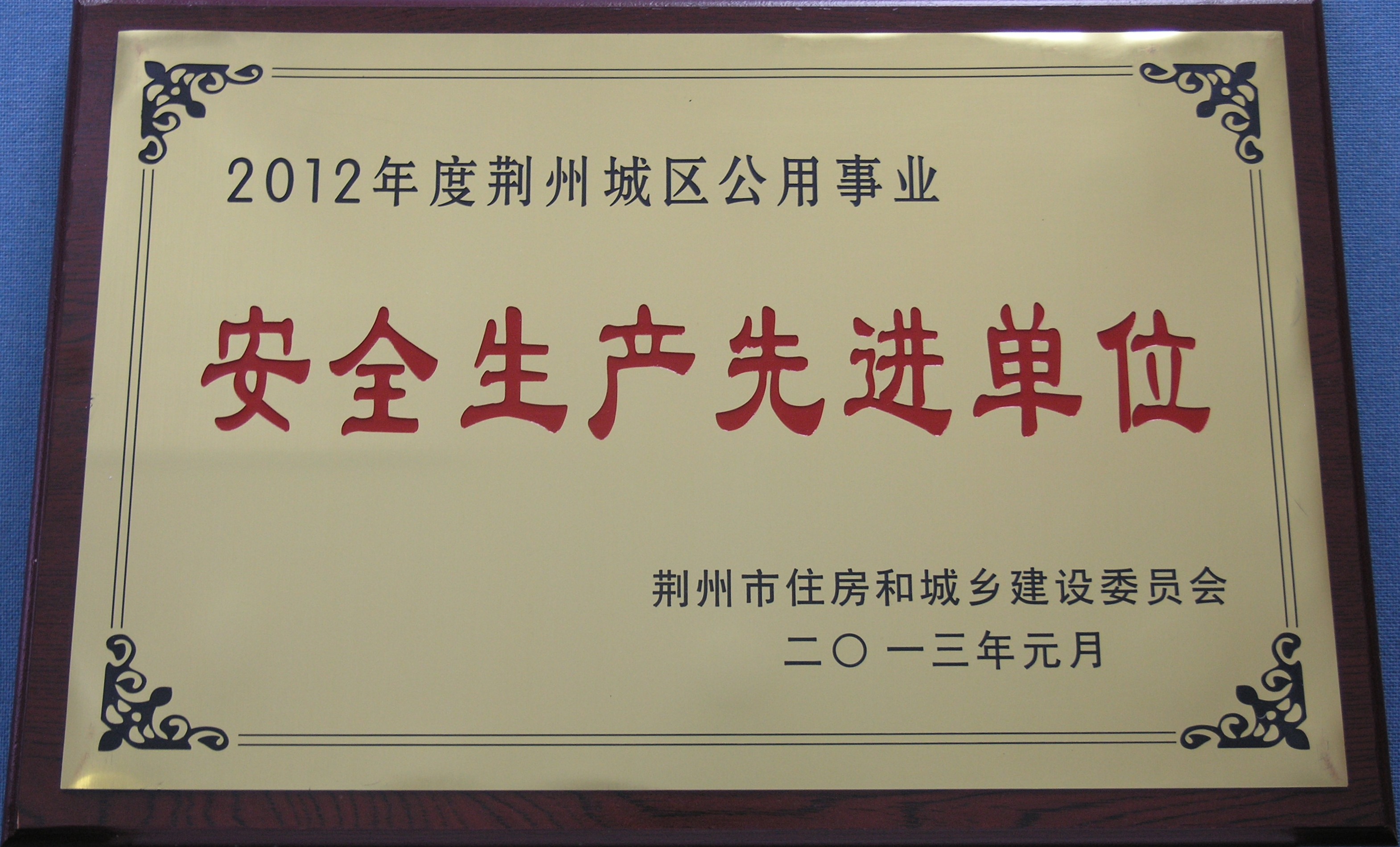 2012年度荆州城区公用事业安全生产先进单位