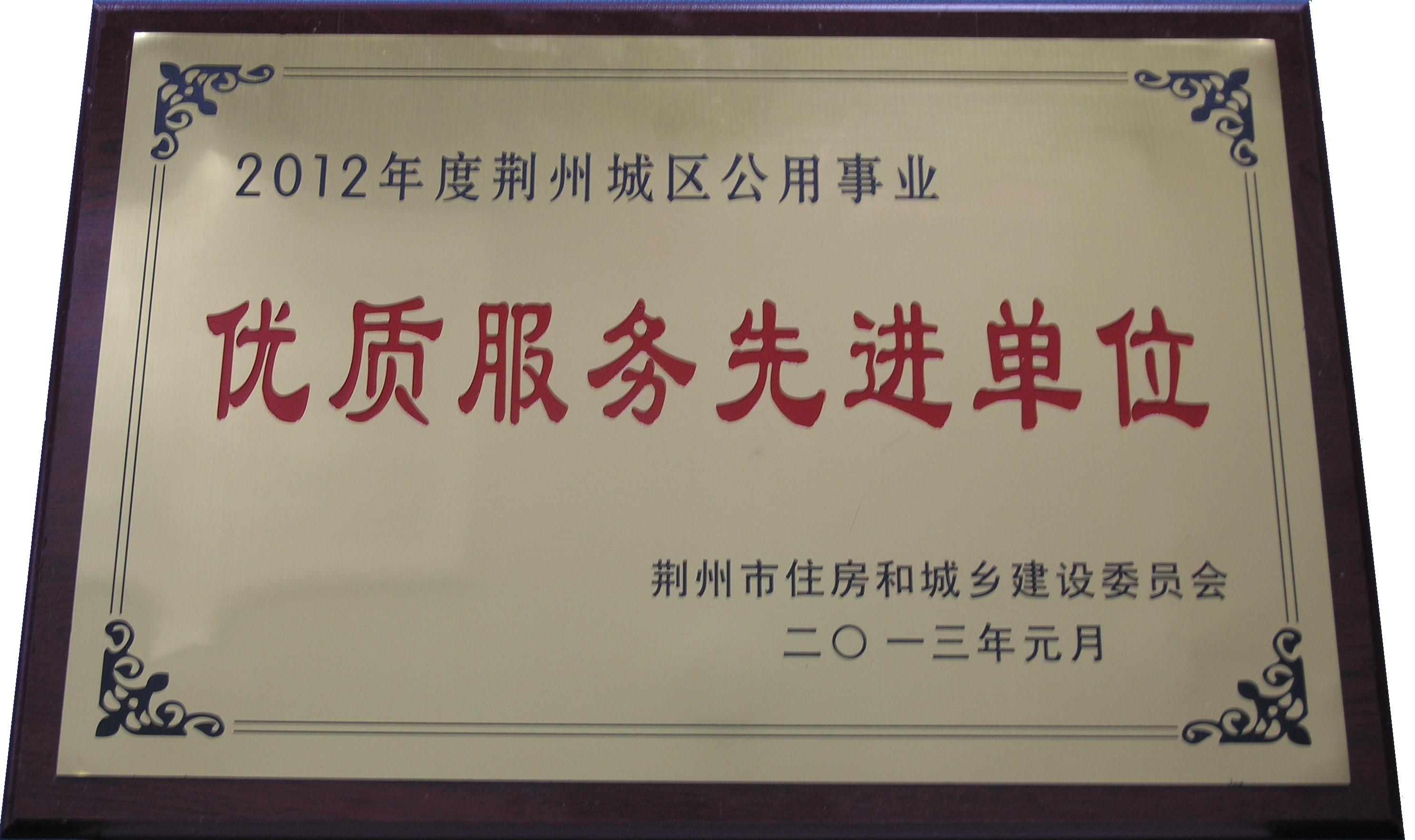 2012年度荆州城区公用事业优质服务先进单位