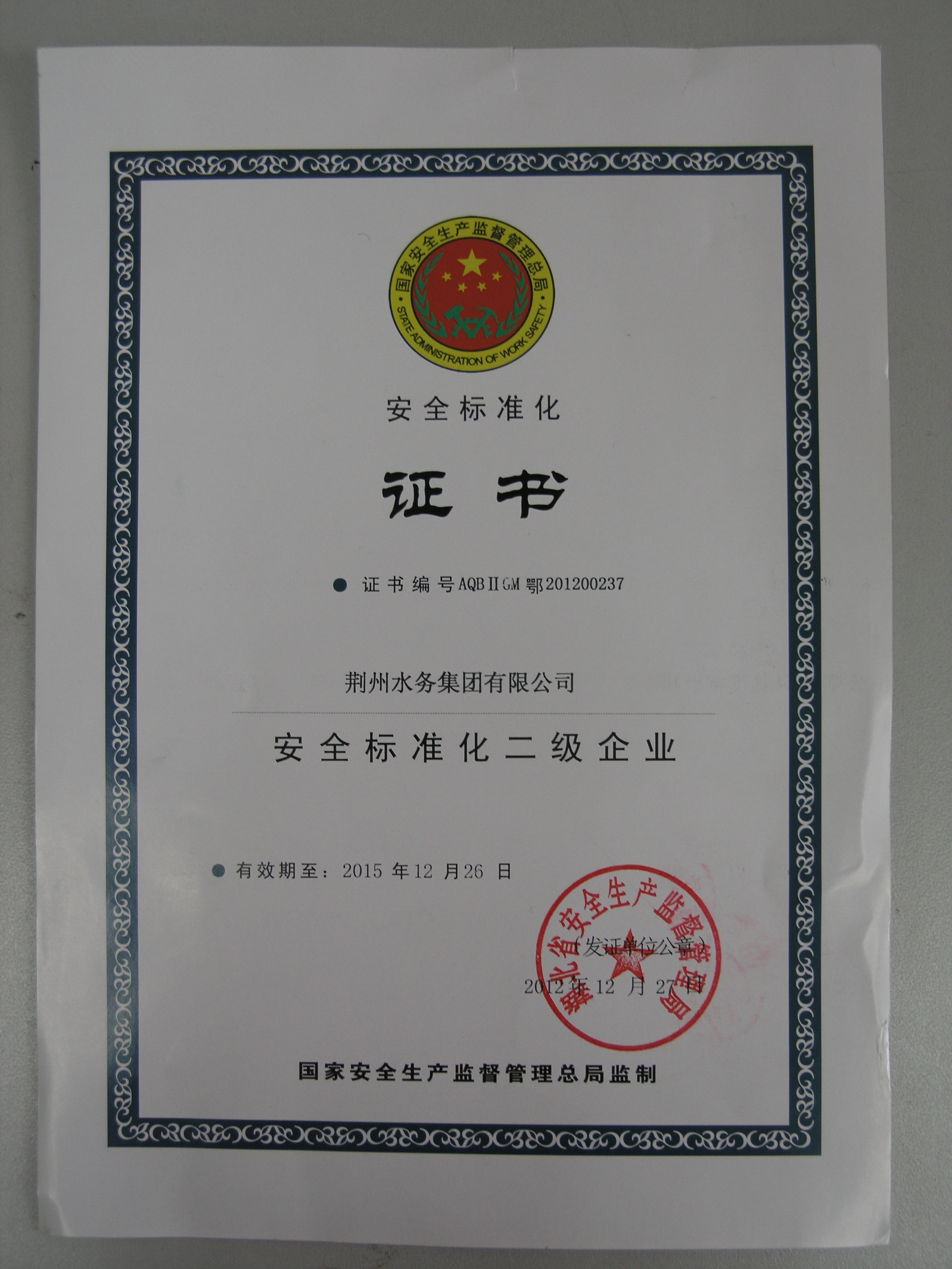 湖北省安全生产标化二级企业(省部级)