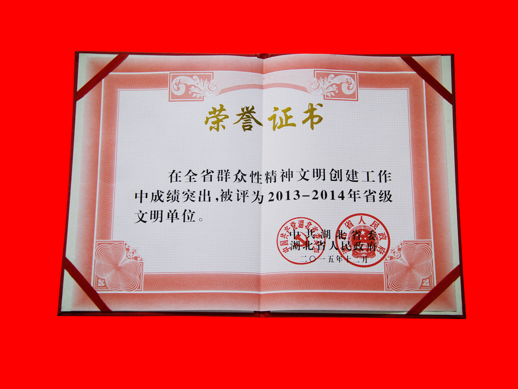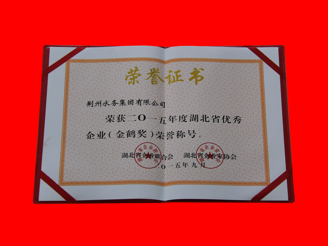 2015年度湖北省优秀企业(金鹤奖)