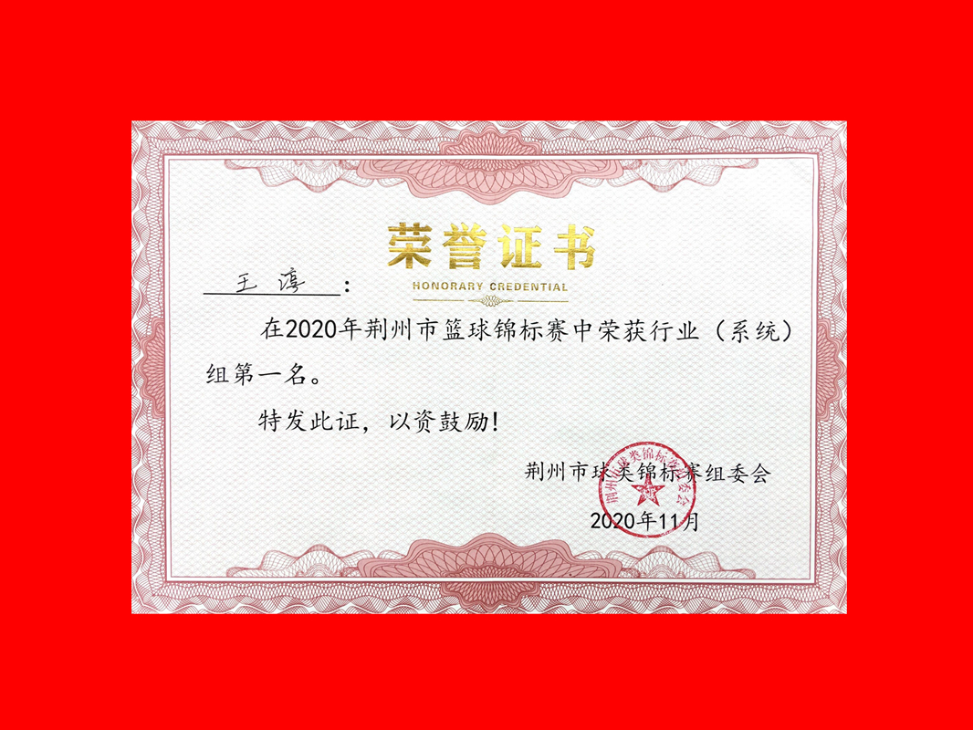 荆州市篮球锦标赛行业(系统)组第一名(王淳)