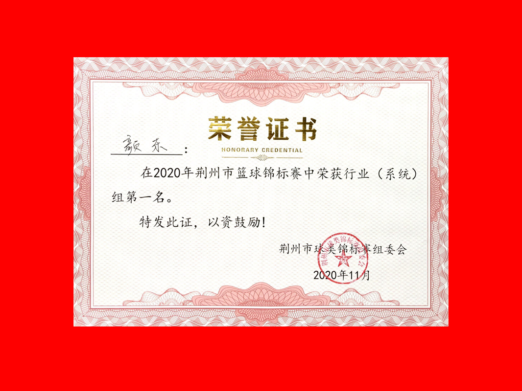 荆州市篮球锦标赛行业(系统)组第一名(颜东)
