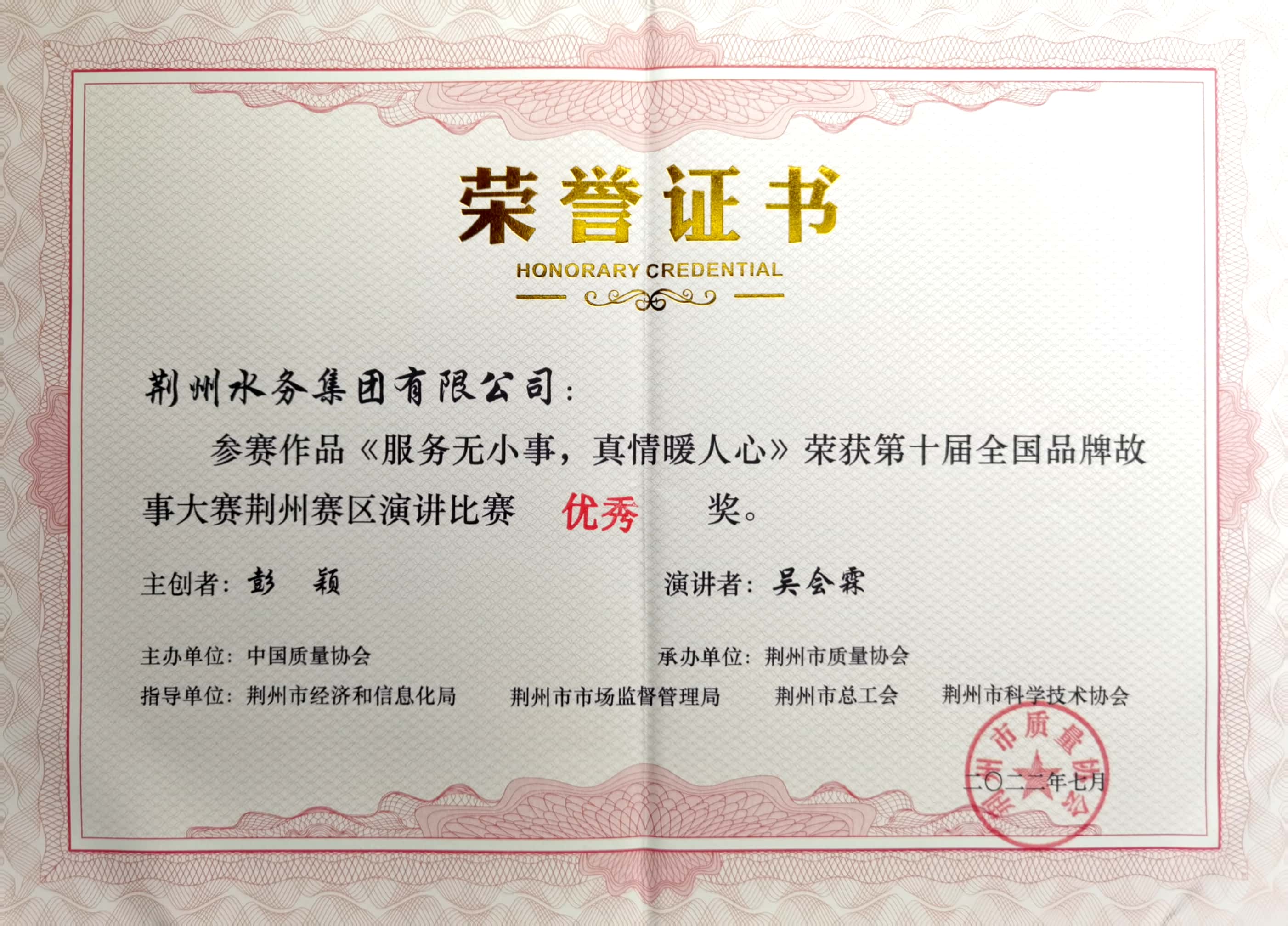 第十届全国品牌故事大赛荆州赛区演讲比赛 优秀奖