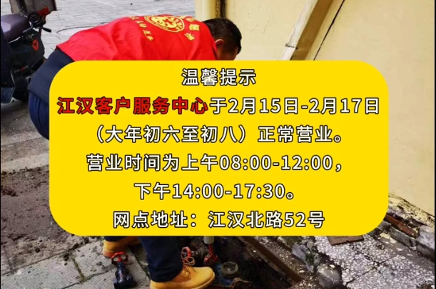 江漢客戶服務(wù)中心于2月15日至2月17日正常營(yíng)業(yè)
