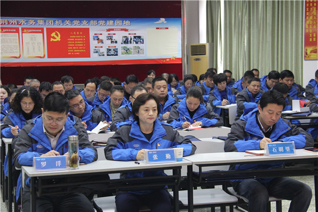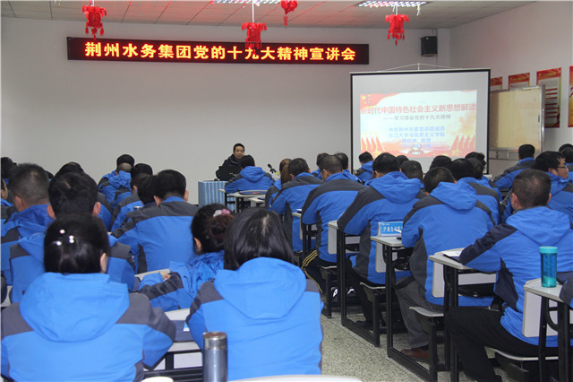 荊州水務(wù)集團總經(jīng)理助理葛世玉主持報告會,他表示,黨的十九大精神已在公司掀起一股學(xué)習(xí)熱潮,各黨支部堅持每周利用學(xué)習(xí)陣地與業(yè)余時間,積極開展學(xué)習(xí)與實踐活動。聆聽此次宣講后,黨員干部還要帶頭在職工中進(jìn)行宣貫,要將黨的十九大精神貫徹實踐活動與安全生產(chǎn)和優(yōu)質(zhì)供水的本職工作相結(jié)合,每一名黨員、每一名員工都要立足本職工作,爭當(dāng)履職盡責(zé)的表率、優(yōu)質(zhì)服務(wù)的模范,全力促進(jìn)城市供水事業(yè)的新發(fā)展。