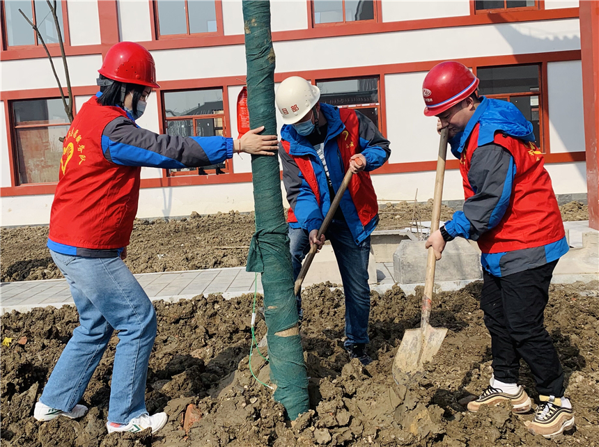 春風(fēng)催新綠,植樹正當(dāng)時(shí)。此時(shí)的紀(jì)南水廠正在進(jìn)行廠區(qū)綠化施工,青年志愿者們?cè)诂F(xiàn)場專業(yè)人員的指導(dǎo)下開展植樹活動(dòng)?;顒?dòng)現(xiàn)場,大家干勁十足、配合默契,有的扛著鐵鍬,有的提著水桶,挖坑、扶苗、培土、踩實(shí)、澆灌.....每個(gè)環(huán)節(jié)都銜接有序,活動(dòng)現(xiàn)場熱火朝天。在大家的歡聲笑語中,一株株銀杏昂然挺立,映襯在水廠古韻風(fēng)情的建筑間,格外美麗。隨后,大家還對(duì)廠園的垃圾進(jìn)行了清理。