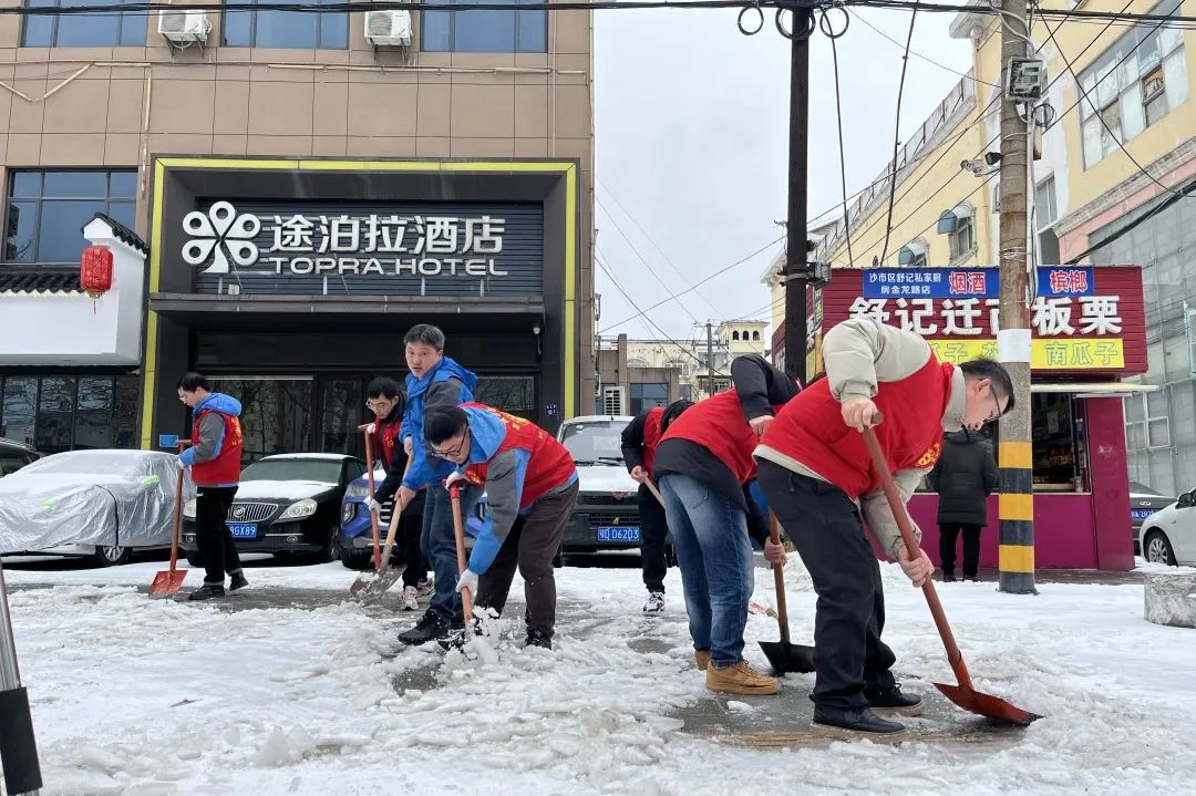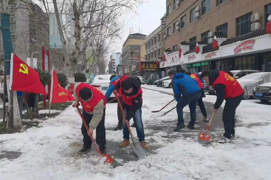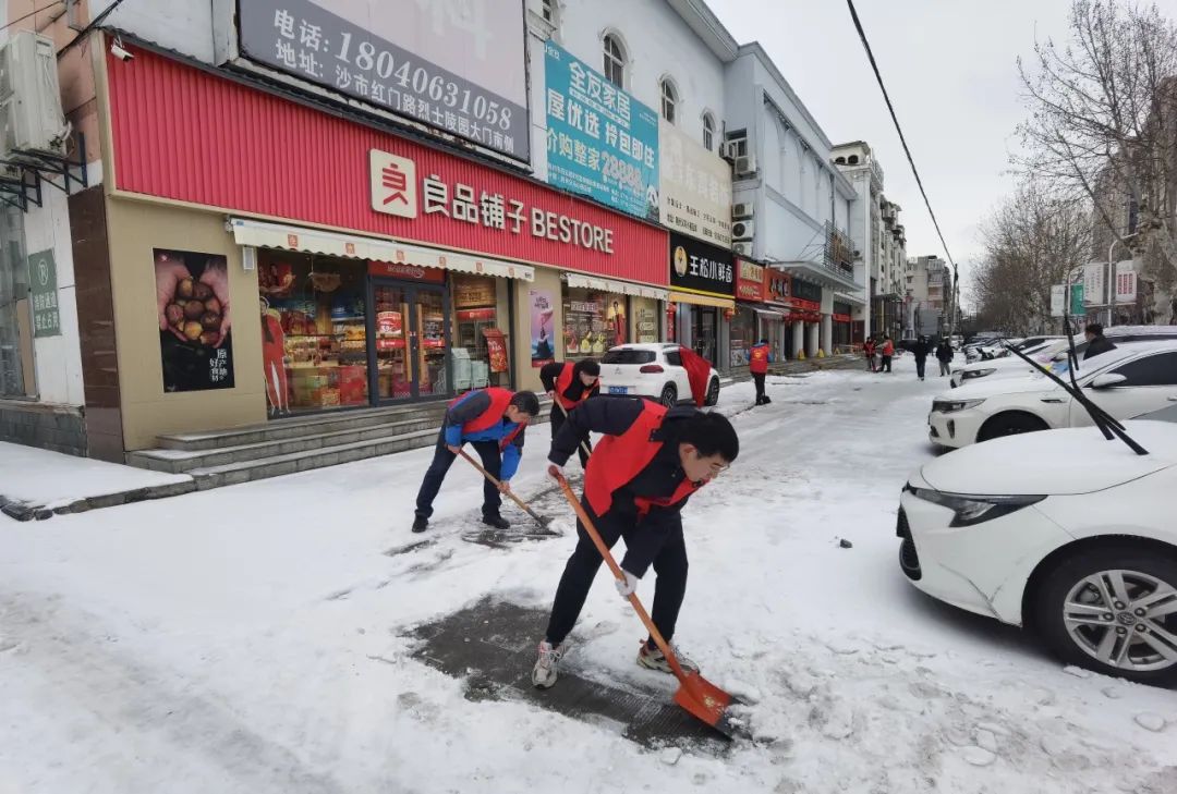 由于氣溫較低,主干道的積雪下還有一層厚厚的凍雨層,清掃較為困難。大家不畏嚴寒,黨員、團員沖鋒在前,清除最困難的積冰路段;青年志愿者們共同攜手,將鏟下的積雪、碎冰清掃干凈。天氣寒冷,但絲毫不影響大家鏟雪的熱情。一個個忙碌的身影,構(gòu)成了一道亮麗的風(fēng)景線,讓這個寒冷的初春變得格外溫暖,為居民群眾開辟出一條條安全出行的“綠色通道”。