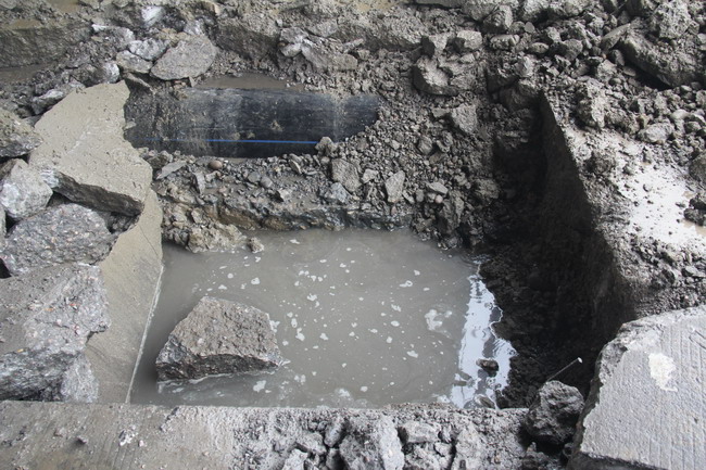 20日上午,天雖然下著大雨,但在東方大道與滬渝高速交匯處的橋洞現(xiàn)場,卻一片忙碌景象,只見橋洞前后設(shè)置著鮮艷的交通警示標(biāo)志,對(duì)來往車輛實(shí)行導(dǎo)流,向左邊橋洞安全通行。右邊橋洞下,水務(wù)集團(tuán)的施工人員身著反光服正在不停的忙碌,挖掘機(jī)對(duì)路面進(jìn)行開挖,發(fā)出聲聲轟響,不遠(yuǎn)處整齊擺放著防腐完成的鋼管,等待溝槽開挖完畢后進(jìn)行安裝。據(jù)現(xiàn)場負(fù)責(zé)的項(xiàng)目經(jīng)理黃凱亮介紹,東方大道全線鋪設(shè)的是PE供水管,在滬渝高速橋洞下方的管道因橋臺(tái)基礎(chǔ)高度受限,管道埋深較淺,同時(shí)遭遇大型重載車輛的長期頻繁輾壓,開始發(fā)生滲漏現(xiàn)象,為確保供水安全,此次管改將對(duì)該段近128米管道進(jìn)行更換,重新安裝耐壓的鋼管,鋼管安裝后采用細(xì)砂回填,并在管頂采用C30鋼筋混凝土封層還原,從而提高管道的抗壓能力。