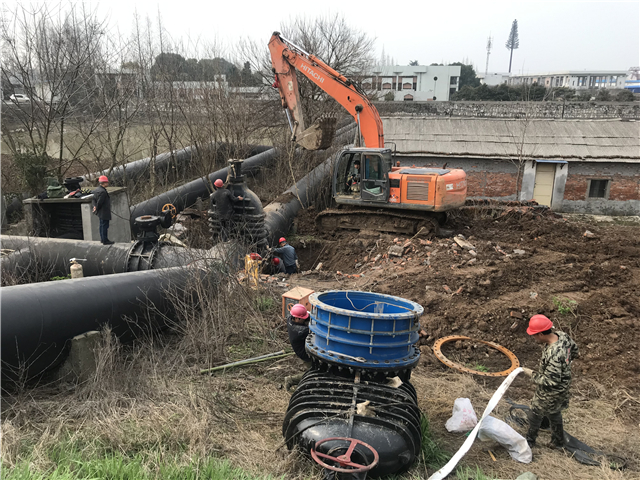 在施工作業(yè)面開挖時(shí),由于該閥門緊連輸水管,且旁邊就是居民房屋,為確保不對(duì)水管和房屋造成損壞,工作人員采用了人工開挖的方式。一個(gè)多小時(shí)后開挖工作告一段落,進(jìn)入閥門拆除環(huán)節(jié)。經(jīng)過仔細(xì)觀察,該閥門因已投入使用多年,且位于露天環(huán)境下,由于風(fēng)吹日曬雨淋,用于管道和閥門連接的螺桿早已銹蝕,需要通過氧割進(jìn)行拆除。然而在切割過程中,卻遇到了突發(fā)情況:廠內(nèi)出水管連通閥因不能完全關(guān)停閉死,導(dǎo)致切割處主管大量漏水,切割工作無法正常進(jìn)行,若帶水作業(yè)將大大影響施工質(zhì)量。眼看著水流不住的噴涌而出,現(xiàn)場(chǎng)的施工員們心急如焚,如何快速關(guān)停供水主管閥門,止住漏水成了迫在眉睫的關(guān)鍵問題。