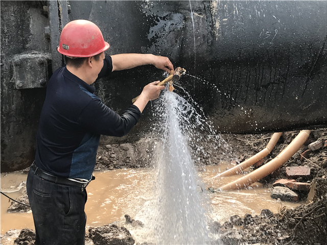 在經(jīng)過連續(xù)緊張的10個(gè)小時(shí)作業(yè)后,整個(gè)開挖、拆除、更換、焊接工作克服重重困難,終于圓滿完工。下午18點(diǎn)柳林水廠1號(hào)輸水管閥門開啟,供水恢復(fù)正常。