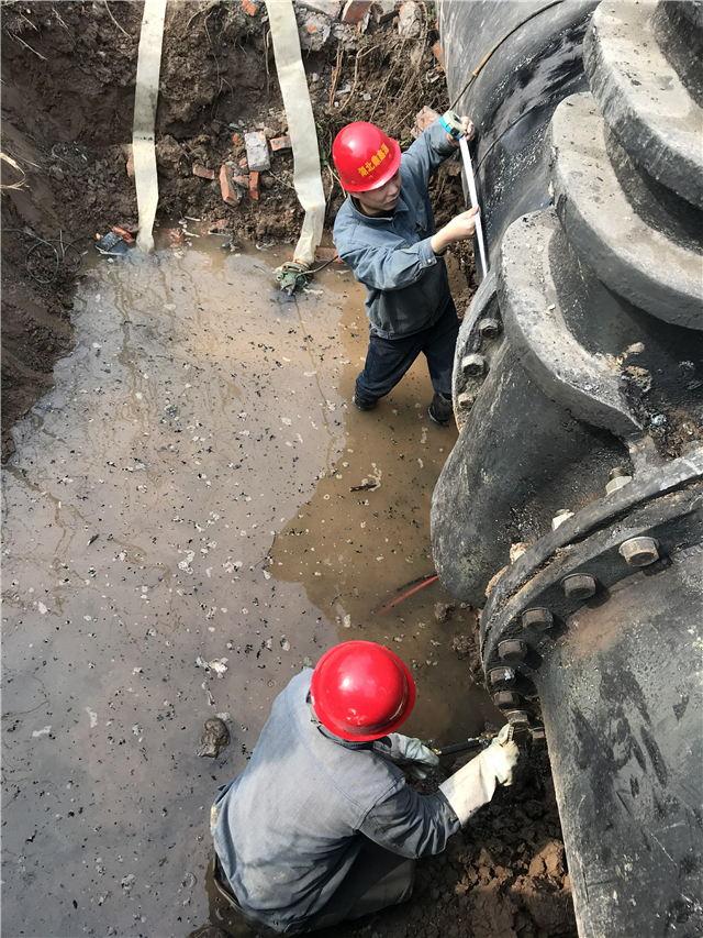 故障閥門拆除后,旋即著手新閥門的安裝。由于新閘體積較原閥小了許多,因此還必須在連接處焊接一根50厘米左右的伸縮器。作為重要環(huán)節(jié),為確保連接處嚴(yán)絲合縫,焊接過程必須做到分毫不差,電焊師傅們站在齊腰深的水坑里彎著腰進(jìn)行焊接,盡管火花四濺,盡管衣服已全部淋濕,盡管一彎就是1個(gè)小時(shí),但他們卻不敢有片刻的放松。
