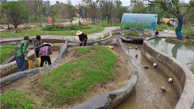 綠化部分完成:與設計方溝通修改觀賞草及水生植物配置文案,以觀賞草為主題修改植物配置設計,綠化已完成全覆蓋,水生植物種植過半,已替換枯萎苗木,清掃園區(qū)。