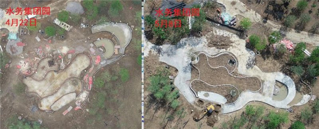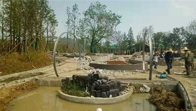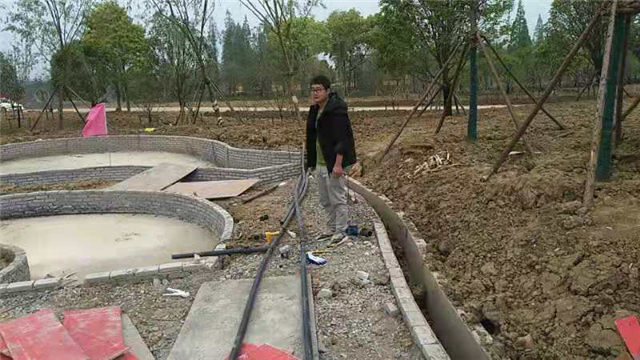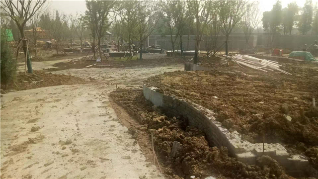 水電部分完成:給排水管道開挖及回填,水池、人工湖、園路給排水管道敷設,水電管道預埋,水池及園區(qū)電氣管道預埋(80%)。