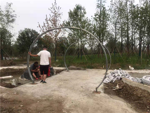 6月3日 水中云盆制作中,休憩亭結構現(xiàn)場焊接