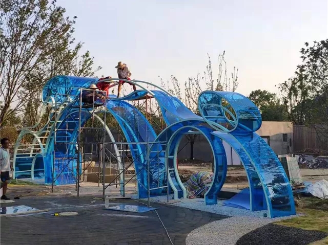 園建部分完成:小云盆紋理處理,亞克力板拆除清洗、局部補漆,展廳亞克力板鉚釘美化處理;