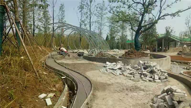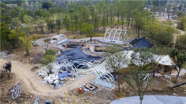 綠化部分完成:園路土方整形、開始種植喬木。