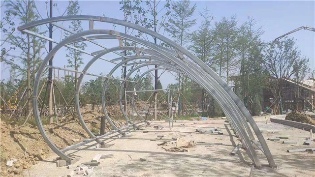1、休息亭鋼結構安裝完成60%、骨架及坐凳焊接完成,展廳鋼構件已安裝完畢,大門景觀構架已完成,水務LOGO骨架焊接安裝完畢,休息亭、展廳、大門骨架油漆完成,安裝展廳內側亞克力板;