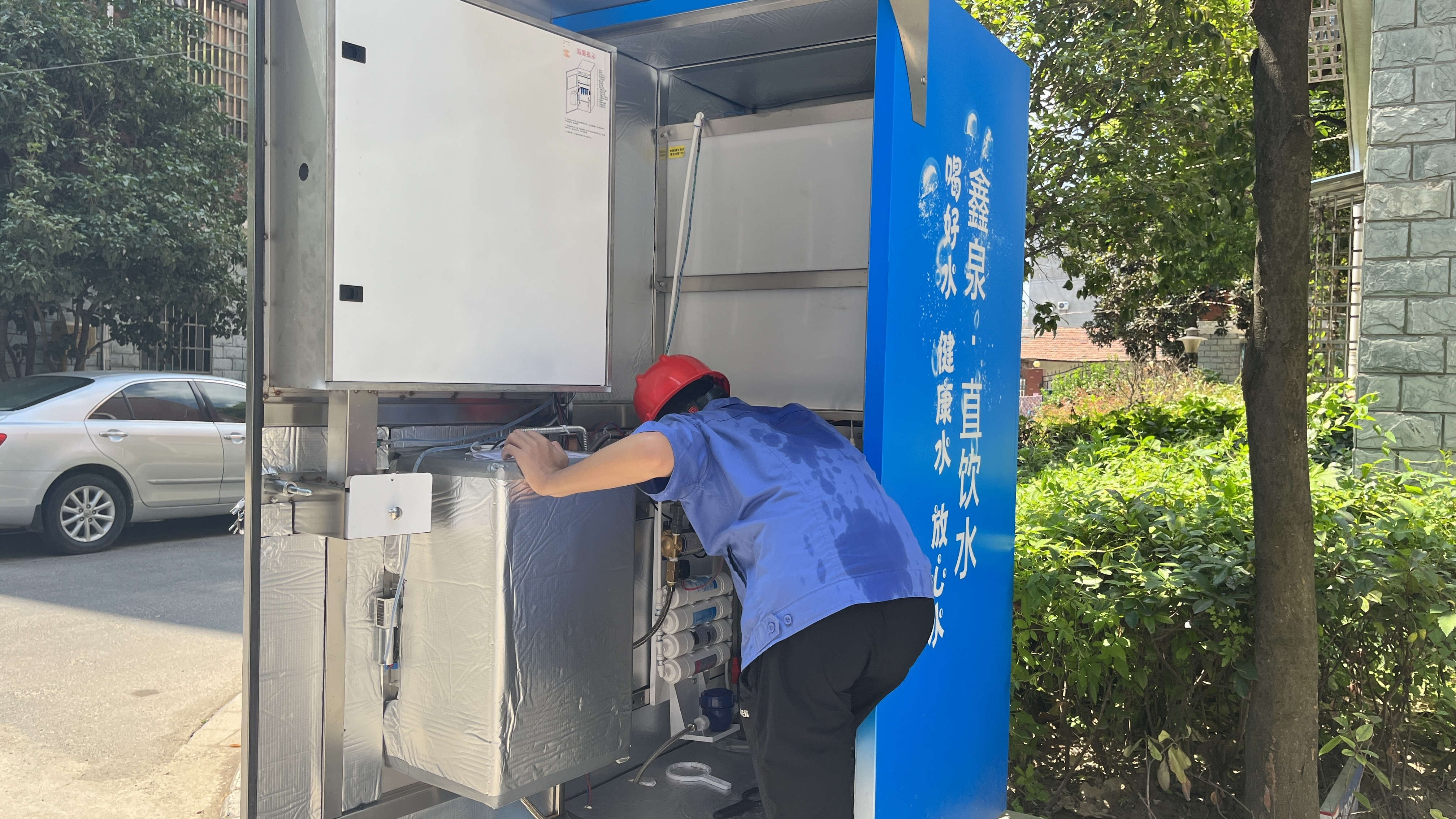 炎炎烈日下,滾滾熱浪中,荊州水務(wù)心泉公司運維部同事們奔走荊州城區(qū),穿梭大街小巷,為百姓們對直飲水水站和管道直飲水泵站進行一周一次的例行檢查和維保工作,他們以自己的實際行動,把愛民的答卷書寫在群眾眼里,鐫刻在百姓心中。