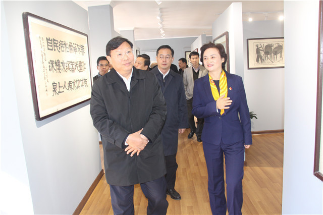 在參觀檢查的途中,荊州水務(wù)集團(tuán)黨委書記、總經(jīng)理張勤向楊智書記一行詳細(xì)介紹了企業(yè)的創(chuàng)建情況。她說,在市創(chuàng)建辦和市國資委的指導(dǎo)和部署下,荊州水務(wù)集團(tuán)以“六個(gè)一”工程為依托,即打造一個(gè)陣地、建設(shè)一個(gè)組織、興辦一批展覽、舉辦一場活動、牽手一個(gè)平臺、開辦一個(gè)課堂,積極推進(jìn)文化三市創(chuàng)建。已先后建成近千平方米的文化陣地,以職工興趣協(xié)會為基礎(chǔ),建成書法、楹聯(lián)、詩詞愛好者協(xié)會,組織多次書畫、楚簡、楹聯(lián)專題展覽,并與荊州市文化創(chuàng)意產(chǎn)業(yè)協(xié)會聯(lián)手,為職工書畫作品進(jìn)行市場推廣。同時(shí),還舉辦首次荊州市知名書畫家走進(jìn)企業(yè),與職工愛好者書畫會友等活動。后期企業(yè)還將進(jìn)一步深化創(chuàng)建,為職工愛好者舉辦書法楹聯(lián)等知識講座,擴(kuò)大“文化三市”創(chuàng)建在廣大職工中的影響。楊智書記一行邊走邊聽,不時(shí)仔細(xì)詢問,對企業(yè)創(chuàng)建工作有了全面深入的了解。