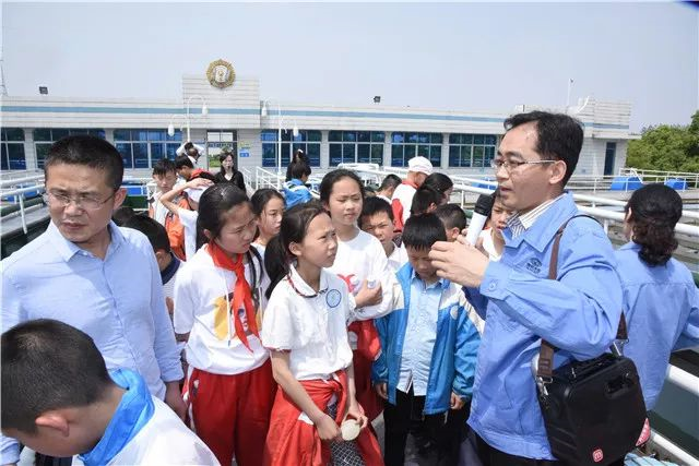 由于本次參加人數(shù)太多,工作人員和老師按照班級(jí)有序組織四個(gè)班分批上水池進(jìn)行參觀。“這里是制水最核心的工藝,江水經(jīng)過加礬環(huán)節(jié)后,在這里進(jìn)行反應(yīng)、沉淀、過濾后,變成潔凈的自來水……”小學(xué)生們?cè)诔恋沓氐臋跅U前,認(rèn)真聽取工作人員的講解,還不停提問,手里拿著本子和筆不時(shí)地在寫著。
