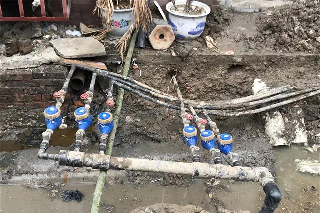 此次水表、表箱整改方案分為三個(gè)步驟:拆除原水表井,將水表移至安全距離范圍內(nèi),為下水管道開挖、安裝預(yù)留作業(yè)面;安裝臨時(shí)供水管道,保障整改期間居民的正常用水;下水管道安裝完畢后,將水表重新安裝到位并砌筑水表井。但施工時(shí)發(fā)現(xiàn),因被污水浸泡時(shí)間較長(zhǎng),水表、閥門等銹蝕情況非常嚴(yán)重,這不僅增加了施工難度,還經(jīng)常發(fā)生接頭、閥門斷裂漏水等現(xiàn)象。