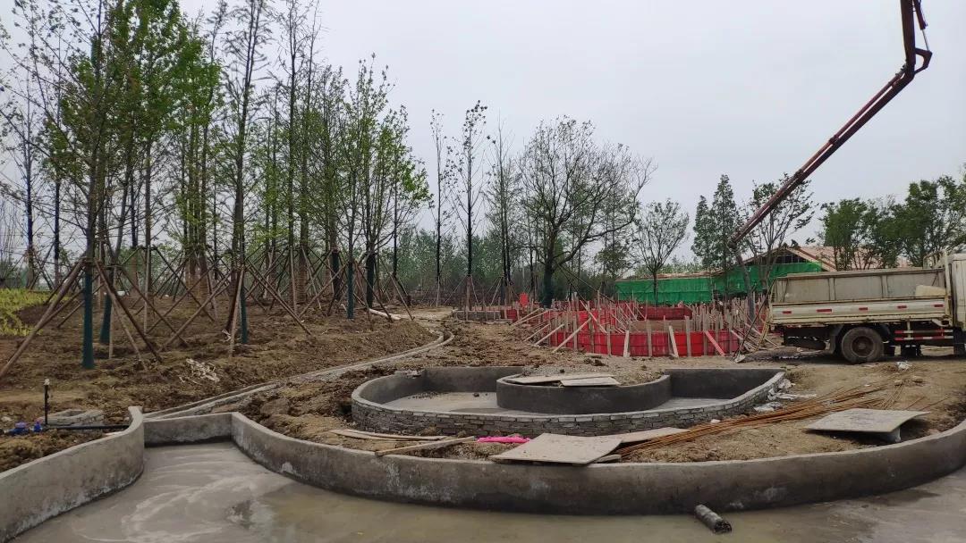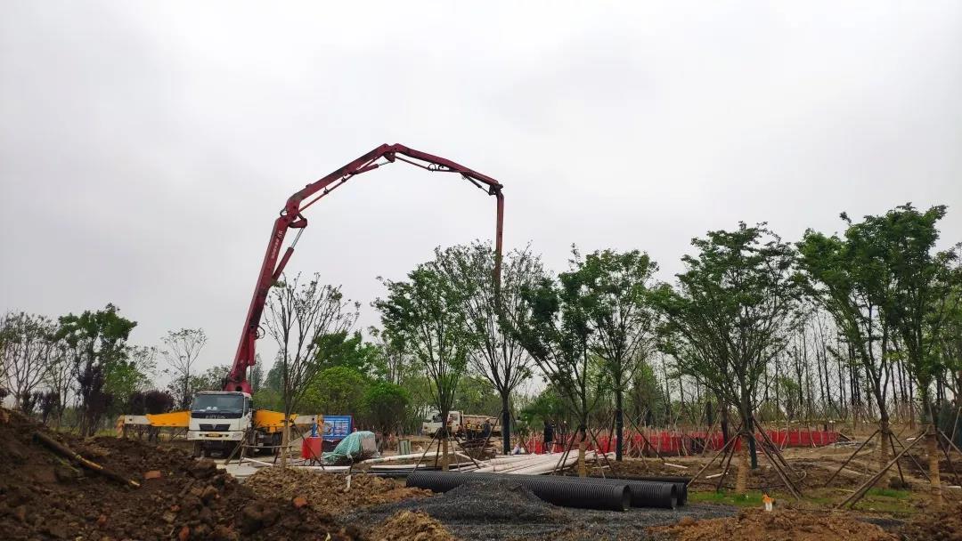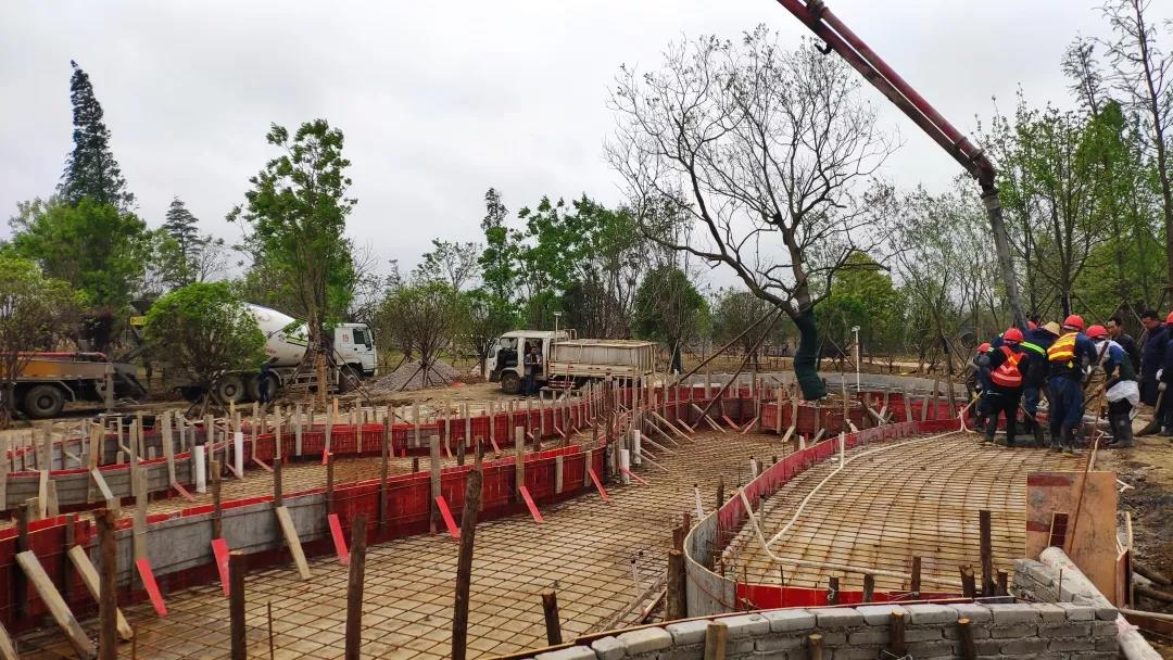 經(jīng)過(guò)兩個(gè)月的緊張施工,目前荊州水務(wù)集團(tuán)展園完成喬木種植總量的90%,在高溫季節(jié)來(lái)臨之前完成了所有大型喬木的栽植,有效保證了植物的成活率及最終植物景觀效果;園建項(xiàng)目已完成跌水池基礎(chǔ)及結(jié)構(gòu)砼澆筑、人工湖墊層澆筑及池壁磚胎膜砌筑、園路開(kāi)挖及碎石回填、展廳基礎(chǔ)開(kāi)挖、景墻基礎(chǔ)開(kāi)挖及墊層澆筑;水電項(xiàng)目已完成管道預(yù)埋總量的90%。
