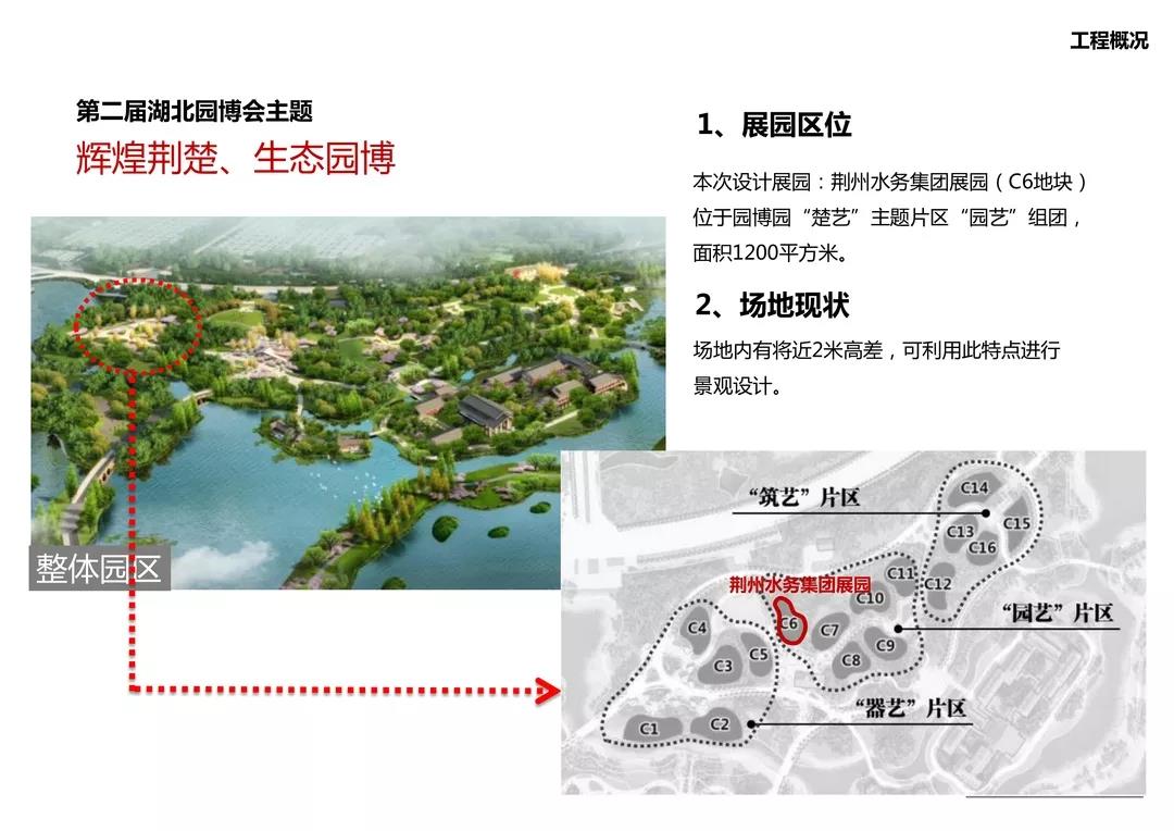 荊州水務(wù)集團(tuán)展區(qū)所在區(qū)域?yàn)?ldquo;楚藝”片區(qū),位于該區(qū)域北部,用地面積1200平方米。展區(qū)充分利用區(qū)內(nèi)的多樣地貌,以及豐富植物資源,通過(guò)深挖楚韻的水文化內(nèi)涵,開(kāi)展生態(tài)景觀建設(shè),打造極具荊楚地域文化特色水藝世界。