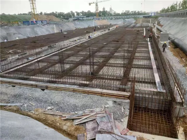 8月份主要實施給水構(gòu)筑物清水池的主體施工,對清水池南側(cè)四、五、六號塊池柱澆筑,南側(cè)一號塊頂板及剪力墻驗筋驗?zāi)?;剪力墻綁扎鋼筋及支模,加工清水池頂板鋼筋等。對送水泵房附屬配電間進行放線、土方開挖和標(biāo)高測量。