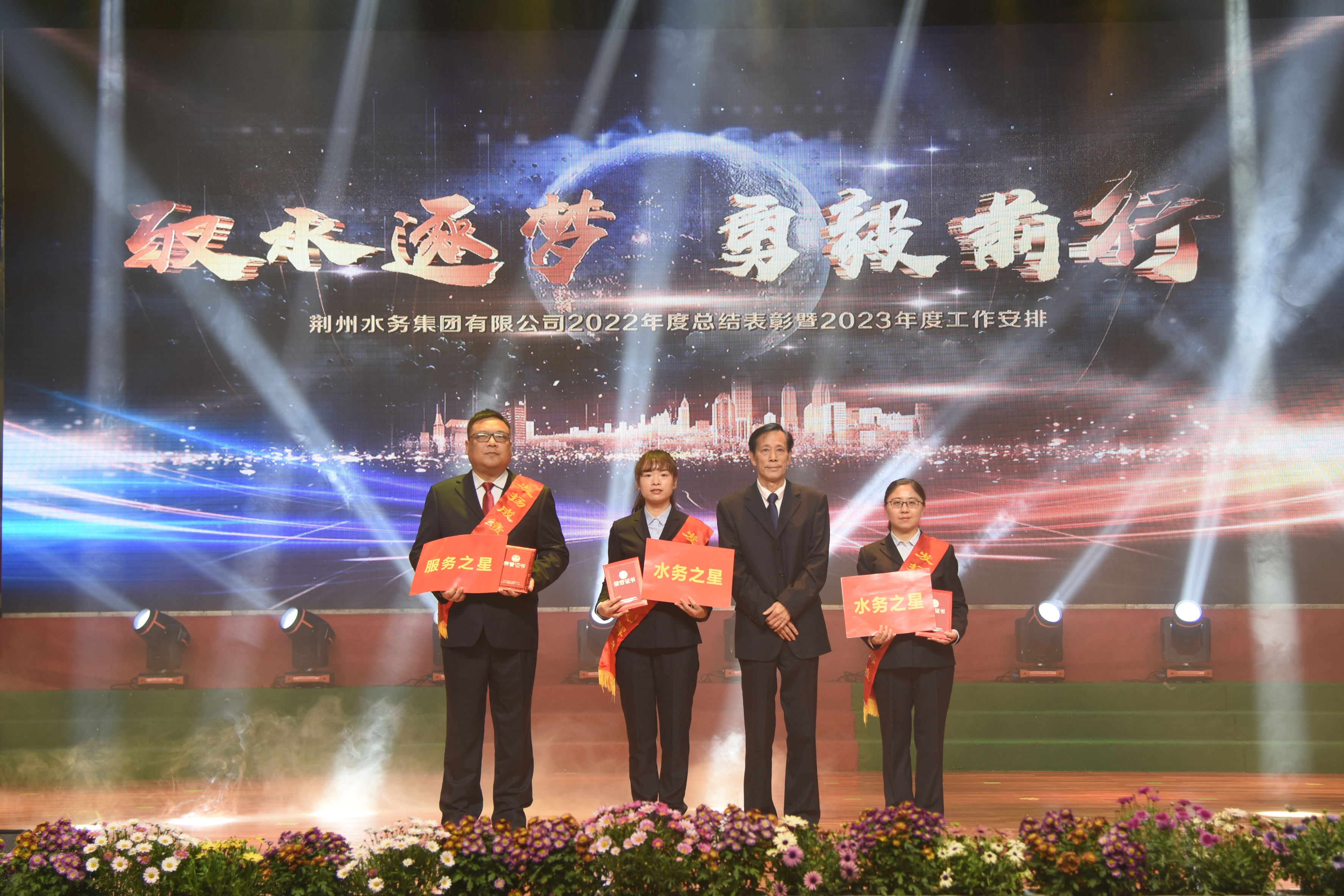 2023年3月8日,荊州水務(wù)集團2022年度總結(jié)表彰暨2023年度工作安排大會在職工活動中心隆重舉行。來自湖北銀龍水務(wù)集團有限公司、新洲長源供水有限公司、漢川銀龍水務(wù)有限公司、荊州中水環(huán)保有限公司、江陵銀龍水務(wù)有限公司、公安銀龍水務(wù)有限公司、石首銀龍水務(wù)有限公司的領(lǐng)導和嘉賓,以及公司全體干部職工600余人參加大會。
