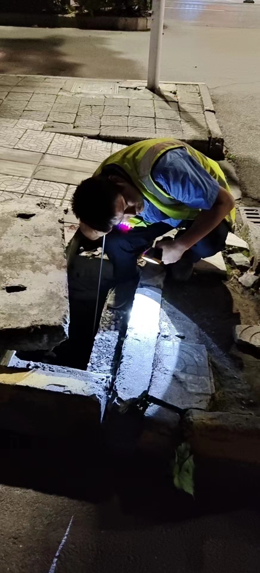 要想做好管網(wǎng)漏控,開展管線巡查才是其落實(shí)的基礎(chǔ)與保障。管網(wǎng)巡查是供水管網(wǎng)運(yùn)行管理中的日常工作,也是應(yīng)對(duì)管道突發(fā)故障積極有效的措施之一,看起來非常平凡,實(shí)際上卻需要付出大量的體力和腦力。管網(wǎng)巡測人員每天得帶著測漏儀器走街過巷,用雙腳沿管線一步一步巡查,巡查工作經(jīng)常要提井蓋、下井內(nèi),地點(diǎn)可能是馬路邊,也可能是草叢中,對(duì)疑點(diǎn)區(qū)域要選擇儀器安放處、仔細(xì)監(jiān)聽漏點(diǎn)等。為了提高工作效率,管網(wǎng)部開展兩班測漏,白天在城區(qū)按計(jì)劃巡查,夜間相對(duì)安靜,巡查聽漏準(zhǔn)確,可對(duì)在白天巡查中存在疑點(diǎn)的地段重測確定,提高測漏準(zhǔn)確率。