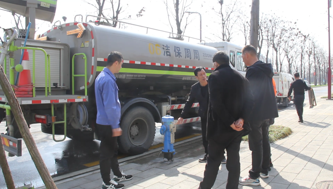 3月30日上午,在武王大道一輛環(huán)衛(wèi)作業(yè)車輛正在藍(lán)色消火栓上取水,只需把IC卡插入卡槽,按下按鈕,就能夠輕松取水。