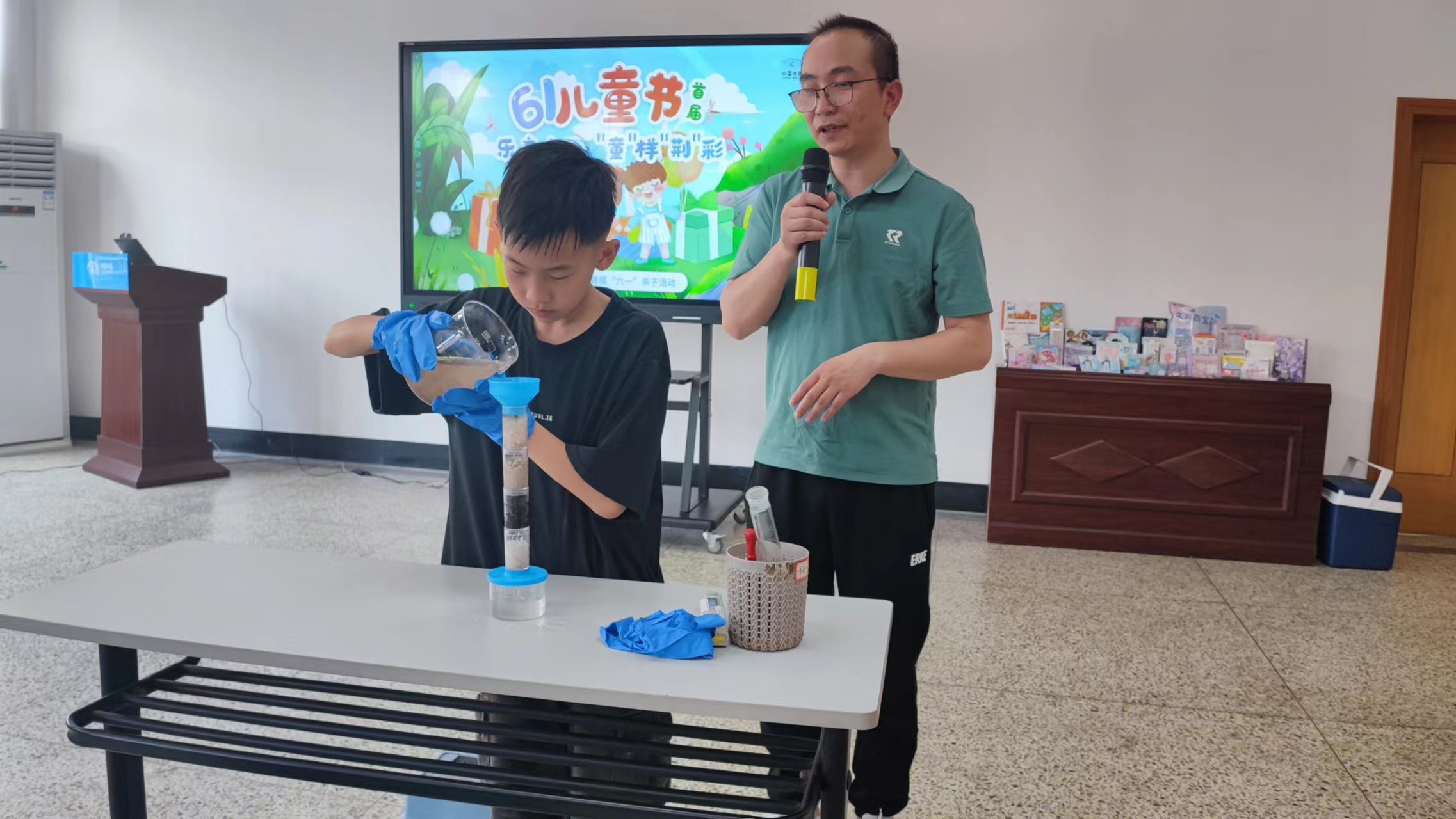 在職工活動中心三樓,孩子們親身體驗(yàn)了自來水的檢測過程,神奇的化學(xué)反應(yīng)讓大家凝神屏氣地觀察著。隨后在游戲環(huán)節(jié)中,《指東向西》《逛三園》《你比劃我猜》……一項(xiàng)項(xiàng)妙趣橫生的活動和親子游戲,將每一個小朋友的興趣都調(diào)動了起來,一串串歡樂的笑聲,一陣陣雀躍的歡呼聲在現(xiàn)場此起彼伏。