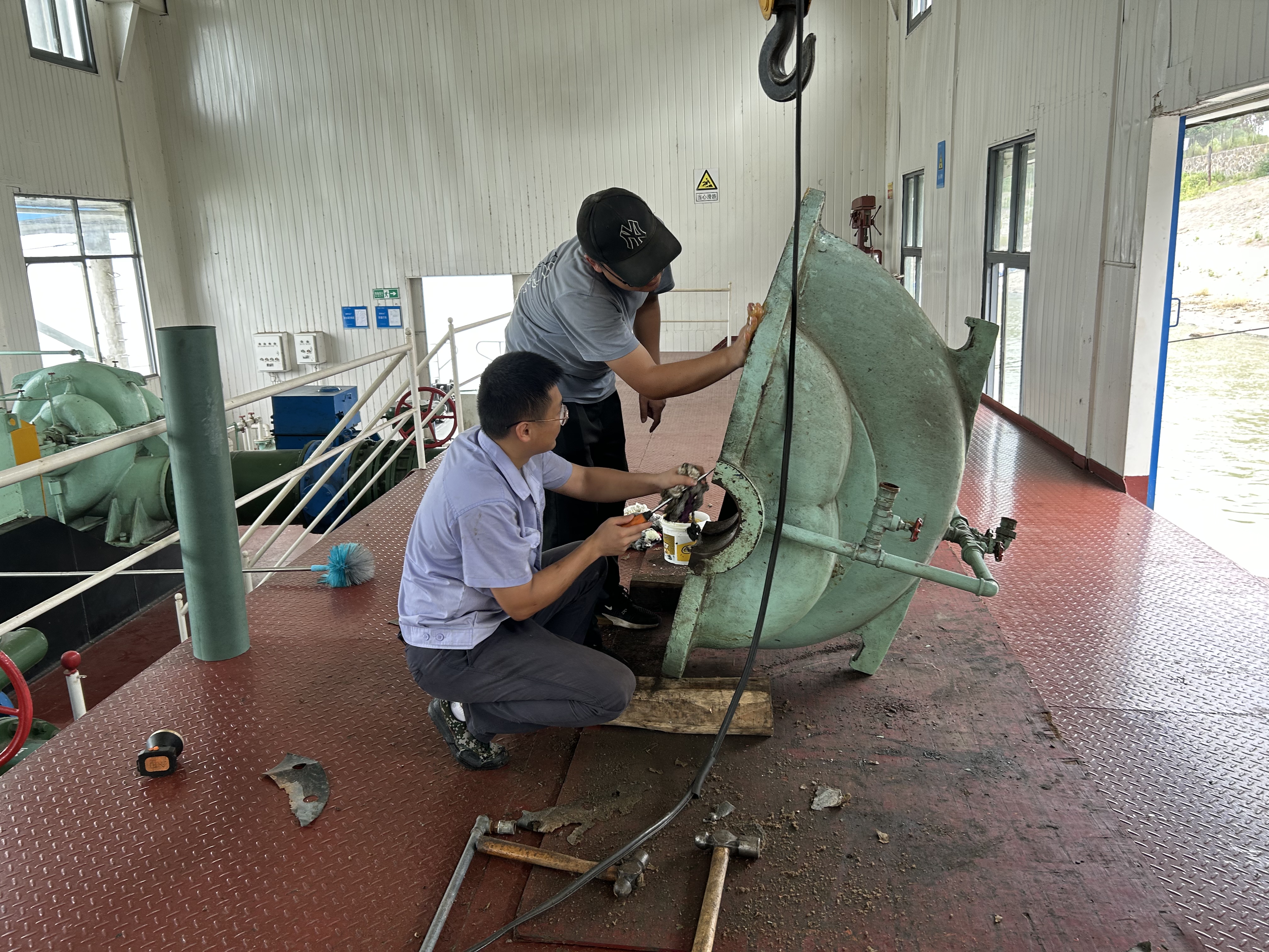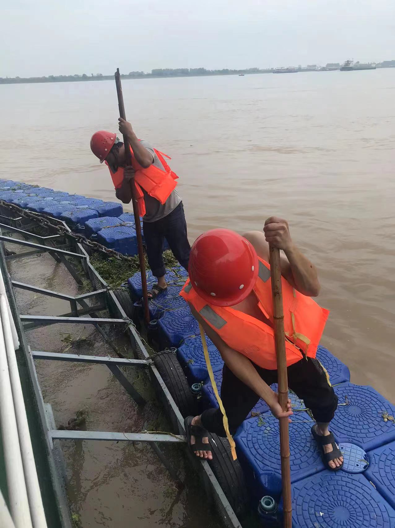 強(qiáng)巡檢。在防汛期間,柳林水廠泵船班為保安全生產(chǎn),安排專人日夜守護(hù)在泵船上,隨時(shí)注意觀測水位的變化。并每日對(duì)護(hù)坡、泵船的搖臂桁架、欄污網(wǎng)、排水口進(jìn)行巡檢,他們在班長余明杰的帶領(lǐng)下,隨著水位的變化急時(shí)收放鋼錨,確保了我廠的安全供水。