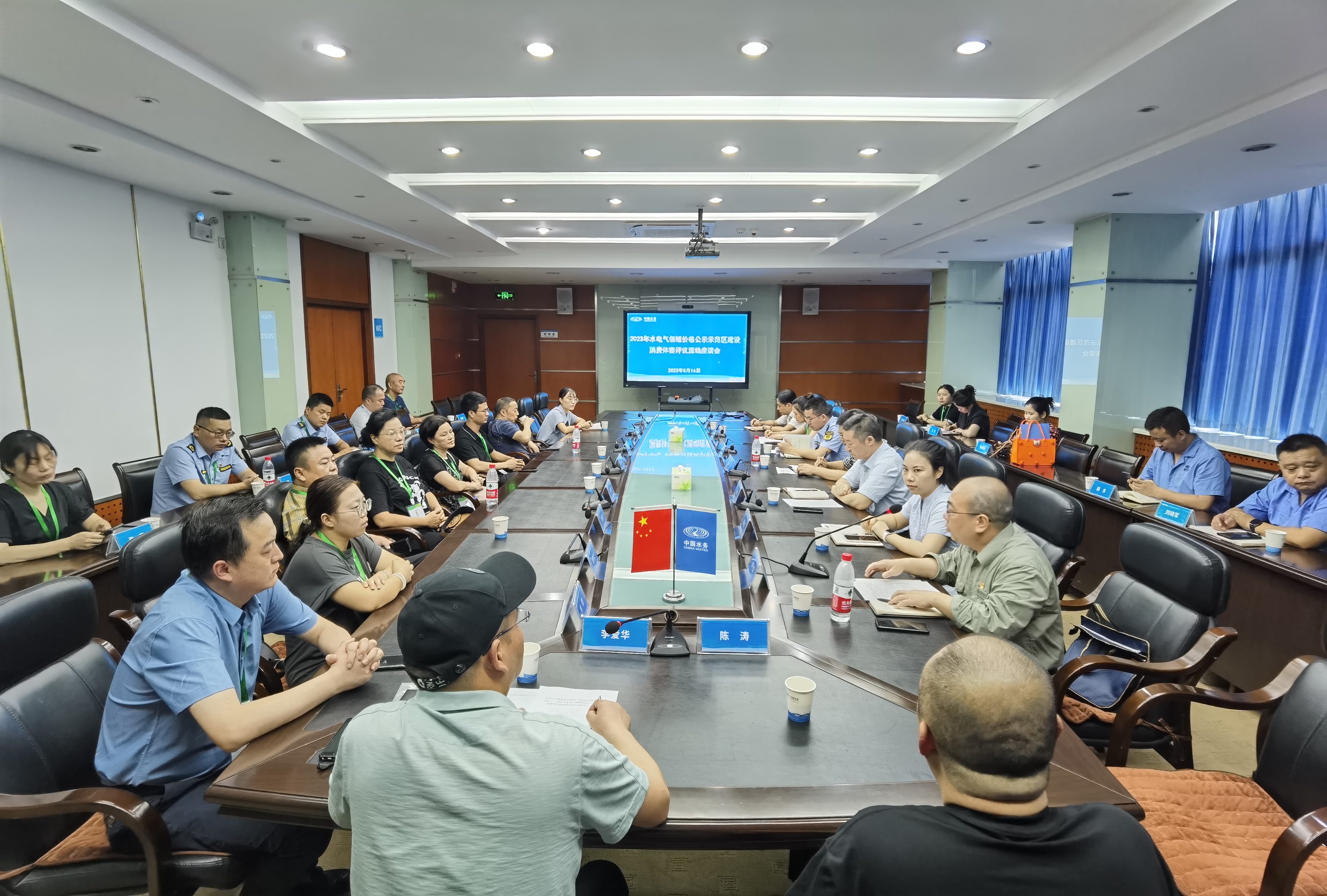 參觀體察結(jié)束后,水電氣企業(yè)相關(guān)負(fù)責(zé)人與體察團(tuán)代表在荊州水務(wù)集團(tuán)會議室召開2023年水電氣領(lǐng)域價格公示示范區(qū)建設(shè)消費體察評議活動座談會。