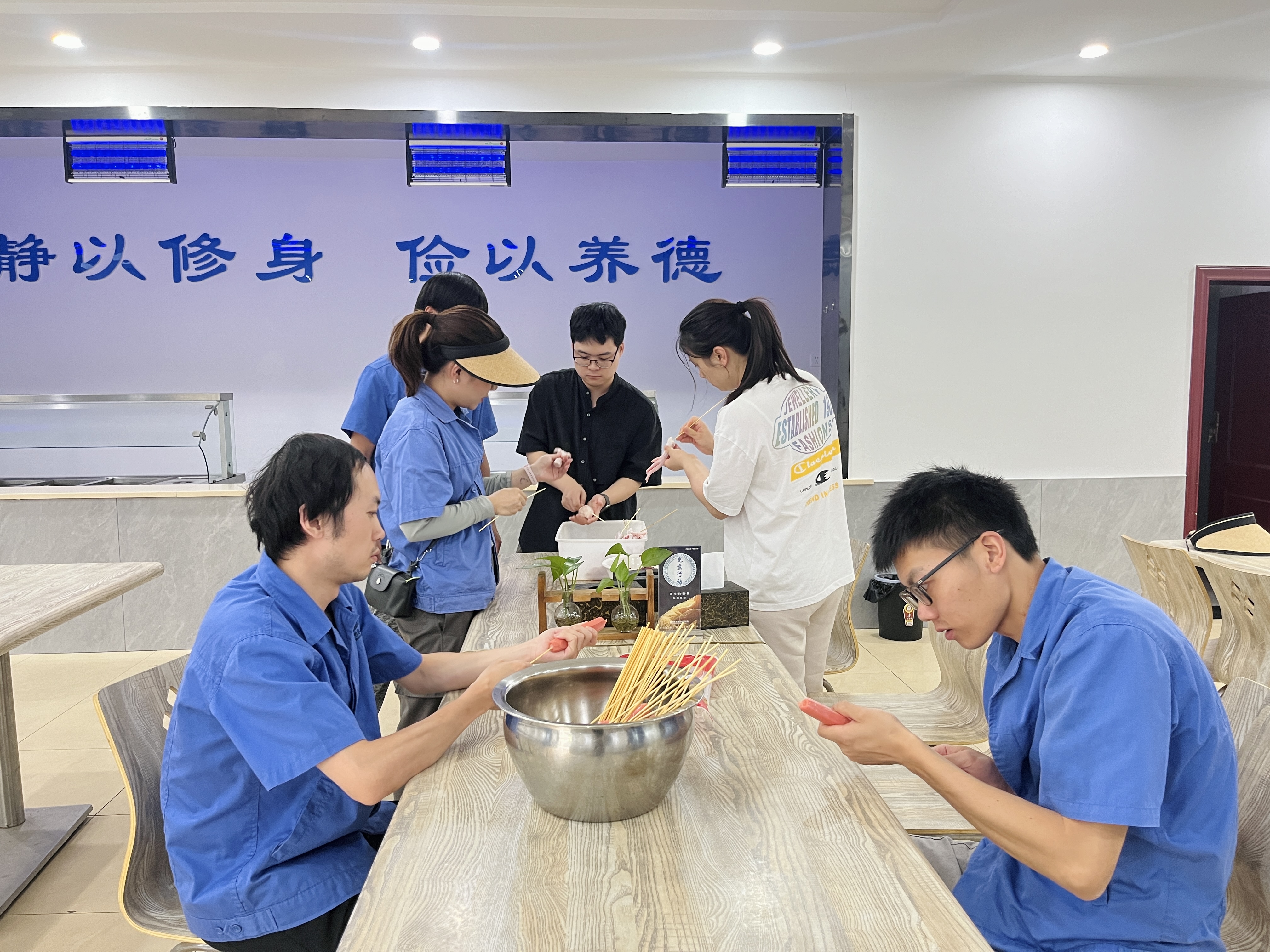 燒烤活動開始前,大家齊心協(xié)力,合理分工,準備著燒烤的食材和用品。有的準備原料,有的串串兒,有的準備燒烤用具……每一道工序都特別認真。看著這些飄香四溢的美食,享受自己動手燒烤的樂趣,減壓又有美好的成就感。
