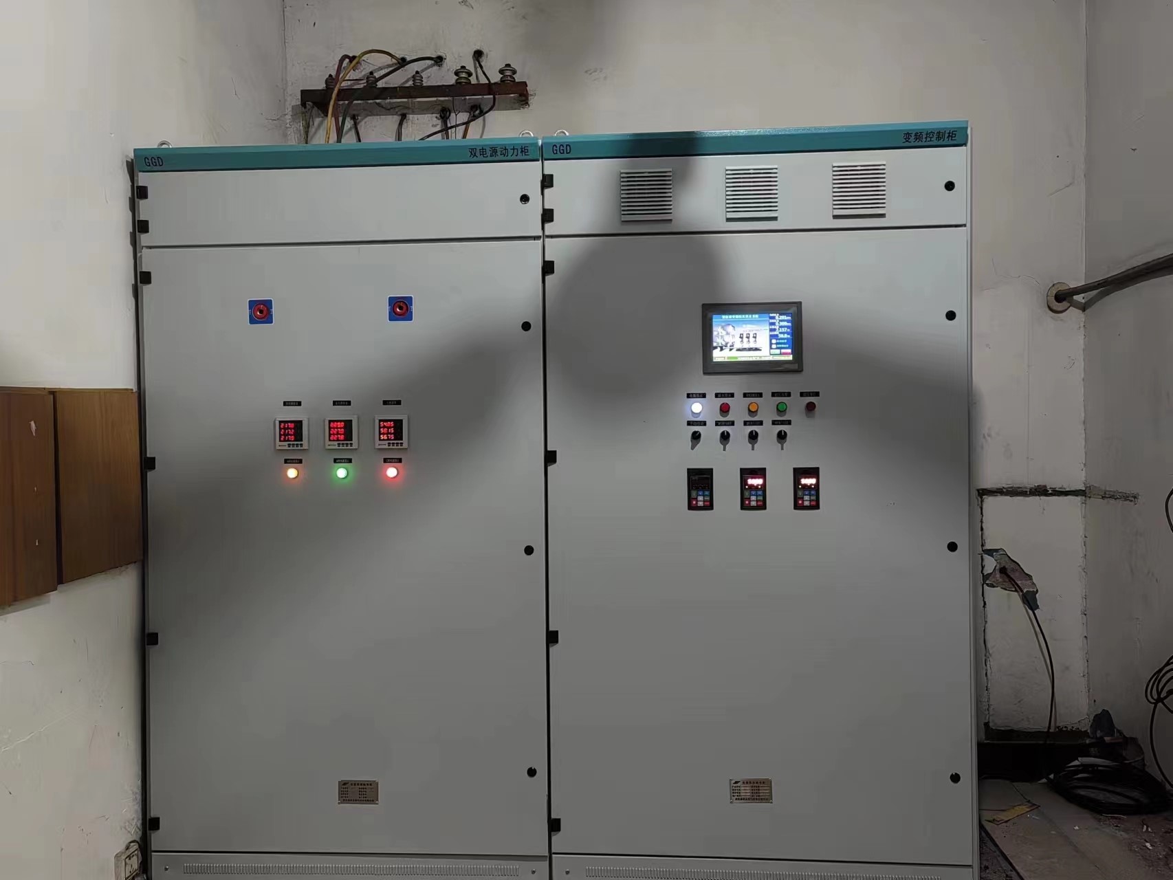 到達(dá)水廠后,經(jīng)過對所有設(shè)備的詳細(xì)檢查和評估,很快技術(shù)員們便商討出了可靠高效的整改方案,在當(dāng)?shù)厮畯S工作人員的全力配合下,整改工作緊鑼密鼓地開展了起來。由于水廠房門尺寸過小,變頻控制柜的體積較大,無法直接從門直接抬進(jìn)去,這讓我們在搬運過程中遇到了不小的困難。好在大家不懼艱險、開動腦筋,拆掉窗戶玻璃之后把配電柜從窗口抬入。看似簡單的工作,卻讓八名技術(shù)員在寒冬臘月累得滿頭大汗。正因為有這樣一群專業(yè)而又熱情洋溢的技術(shù)員堅持不懈的努力,才使整個設(shè)備升級改造工作進(jìn)行地十分順利。又因任務(wù)本身十分艱巨,一直到晚八點,歷經(jīng)十二個小時,工作才圓滿完成。