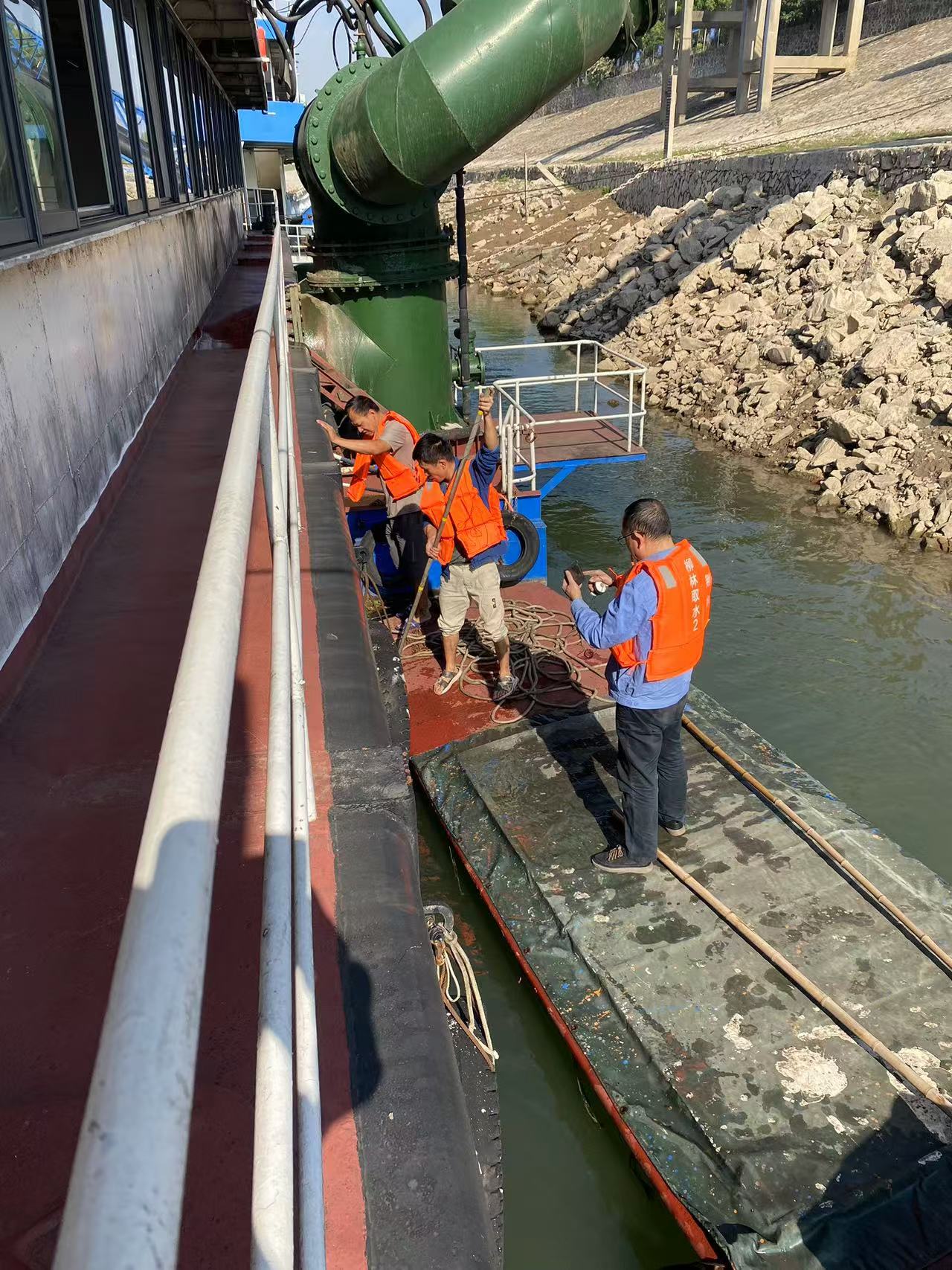 面對(duì)枯水期的到來,為確保取水泵船安全運(yùn)行,一方面生產(chǎn)技術(shù)部組織專業(yè)人員對(duì)郢都、柳林、南湖取水泵船水位進(jìn)行定時(shí)水位測(cè)量,保障取水效能及安全,另一方面各制水廠加大泵船監(jiān)測(cè)力度,及時(shí)調(diào)整泵船方向,消除泵船擱淺風(fēng)險(xiǎn)同時(shí)安排專人做好沖砂工作。