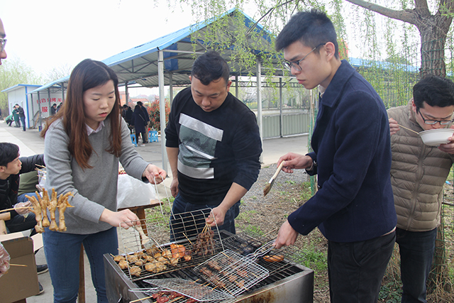 長湖邊上花紅柳綠、油菜飄香,一派自然風光,團員青年們結伴成行,一邊欣賞四周的美麗景色,一邊三五組合擺下姿勢留影,雖然他們來自各個不同的部門,平時工作交集不多,但青年人的熱情與活力使得大家一會就相互熟悉并親密交談起來。觀景之后,大家在湖邊進行了燒烤活動,團員青年們把精心準備的食材一一擺好,大家主動分工協(xié)作,男士們燒炭生火,女士們洗菜擺碟,很快便升起了裊裊炊煙,你切菜我串菜、你燒食我刷油,忙得不亦樂乎,不一會燒烤現(xiàn)場便香氣四溢 ,大家爭先恐后地分享著食物,相互聊著工作和生活中的點點滴滴,其間還開展了搶凳子等游戲活動,歡聲笑語不斷,參與人員有了一次不一樣的戶外體驗。