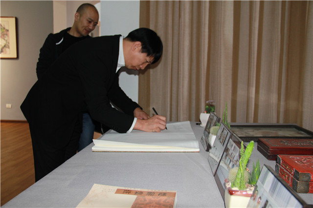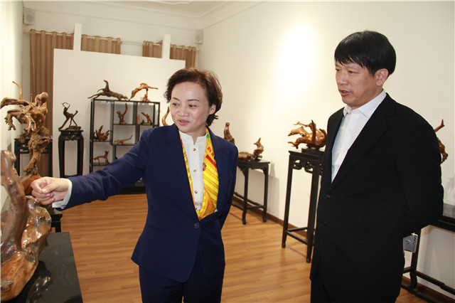 當(dāng)天上午,付敏先生一行首先前往荊州水務(wù)集團(tuán)企業(yè)文化展廳。步入展廳,濃厚的荊楚文化特色撲面而來(lái)。具有荊楚文化代表性的楚簡(jiǎn)作品,一幅幅神形兼?zhèn)涞母褡髌罚运幕?、善文化為主題創(chuàng)作的書(shū)法與楹聯(lián)作品,付總一行駐足品讀欣賞,興致濃厚的了解作品中的含義。在參觀中,他進(jìn)一步了解到,這些作品的原創(chuàng)者大多是荊州水務(wù)集團(tuán)的職工時(shí),不禁對(duì)荊州水務(wù)集團(tuán)濃厚的文化氛圍表示贊嘆。
