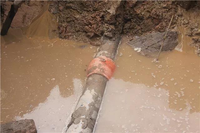 6月12日晚7點(diǎn),荊監(jiān)一級公路楊場收費(fèi)站附近DN400 供水管道被路政施工人員打穿破裂,自來水噴涌而出,周邊瞬間成為汪洋。接到報漏電話后,公司24小時搶險值班隊伍半個多小時便趕到了現(xiàn)場,果斷在第一時間關(guān)閥止水。為了加快搶修進(jìn)度,及時恢復(fù)沿線用戶供水,在已是夜間且管道埋藏較深的情況下,搶修人員克服困難,多方協(xié)調(diào)了鋼板樁打樁機(jī)及長臂挖機(jī)等大型機(jī)械設(shè)備,經(jīng)過緊張、有序、繁重的施工后,在次日凌晨7時開挖出被破壞的供水管道。隨后搶修人員又爭分多秒,在已是連續(xù)奮戰(zhàn)超過12個小時的情況下,又對破裂管道進(jìn)行清洗、修復(fù)、開閘等一系列工作,最終于13日9時恢復(fù)了供水。