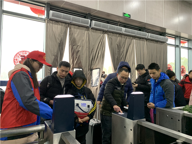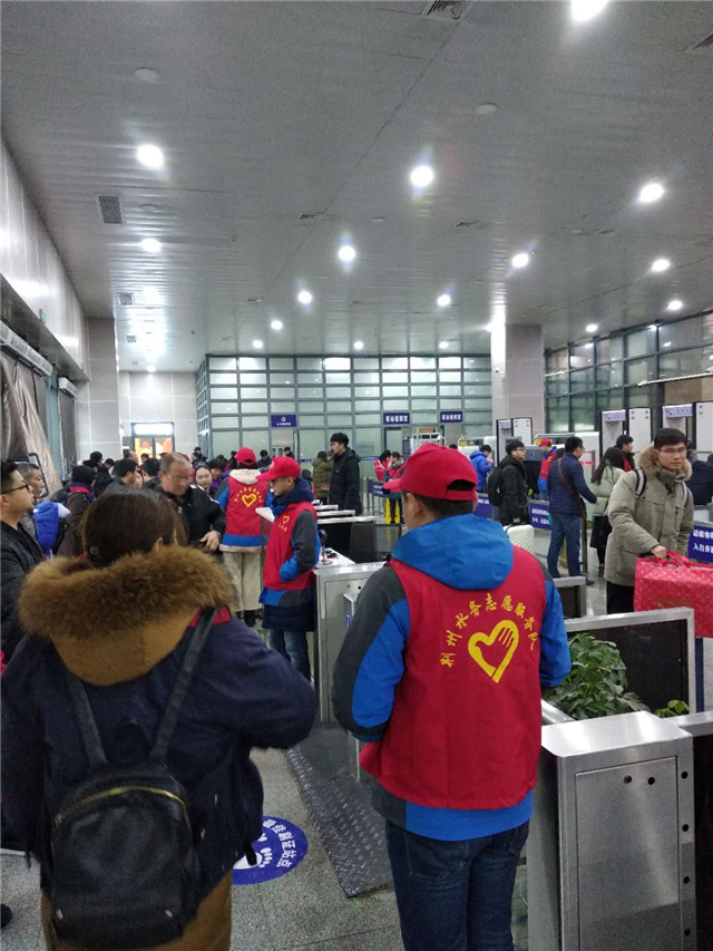 7點30分,荊州水務集團的10名青年志愿者便早早集結(jié)在荊州火車站站前廣場。他們身穿紅馬甲,頭戴小紅帽,頂著寒風細雨,分頭為過往旅客提供各類力所能及的幫助。他們中,有的在自動售票處指導乘客取票,有的在進站口幫助搬運行李和維護秩序,有的在檢票口幫助乘客讀取身份信息順利進站。他們以點滴行動踐行著“互相幫助、無私奉獻、不求回報”的志愿者精神,為這個寒冬注入了一股暖流,為這座城市增添了一抹色彩,更溫暖了一名又一名步履匆匆的返程旅客。