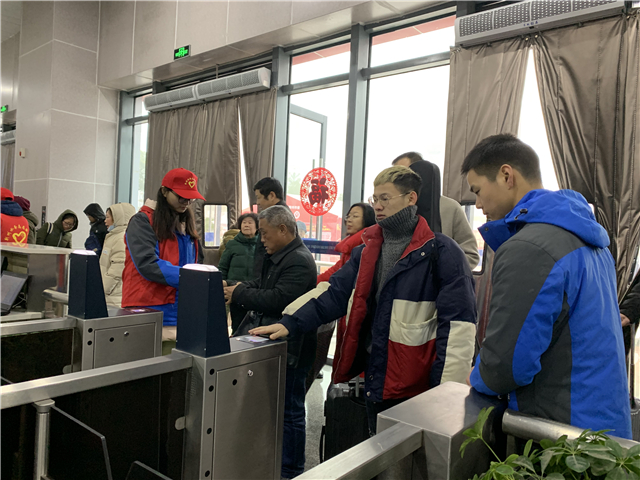 7點(diǎn)30分,荊州水務(wù)集團(tuán)的10名青年志愿者便早早集結(jié)在荊州火車(chē)站站前廣場(chǎng)。他們身穿紅馬甲,頭戴小紅帽,頂著寒風(fēng)細(xì)雨,分頭為過(guò)往旅客提供各類力所能及的幫助。他們中,有的在自動(dòng)售票處指導(dǎo)乘客取票,有的在進(jìn)站口幫助搬運(yùn)行李和維護(hù)秩序,有的在檢票口幫助乘客讀取身份信息順利進(jìn)站。他們以點(diǎn)滴行動(dòng)踐行著“互相幫助、無(wú)私奉獻(xiàn)、不求回報(bào)”的志愿者精神,為這個(gè)寒冬注入了一股暖流,為這座城市增添了一抹色彩,更溫暖了一名又一名步履匆匆的返程旅客。