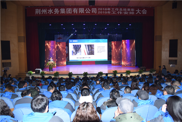 新起點(diǎn),承載新希望;新藍(lán)圖,開(kāi)啟新征程! 2月26日,“激揚(yáng)荊水 • 筑夢(mèng)未來(lái)”荊州水務(wù)集團(tuán)有限公司2019年年會(huì)暨頒獎(jiǎng)典禮在公司職工活動(dòng)中心隆重舉行。來(lái)自公司各個(gè)崗位、各條戰(zhàn)線的500余名干部職工意氣風(fēng)發(fā)、歡聚一堂。