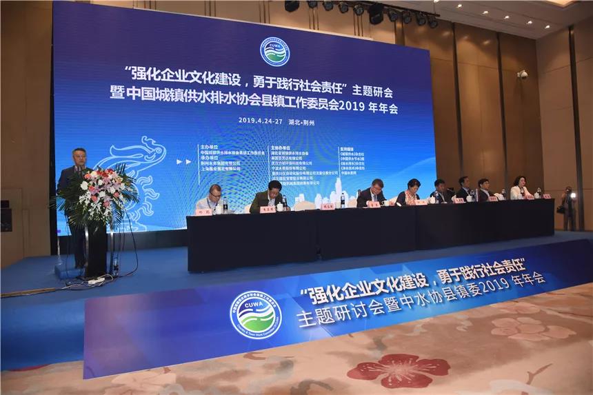 春暖花開萬物并秀,群賢畢至古城生輝。4月24日至4月27日,由中國水協(xié)縣鎮(zhèn)工作委員會主辦,湖北省供排水協(xié)會協(xié)辦,荊州水務集團有限公司、上海展業(yè)展覽公司等多家單位共同承辦的中國水協(xié)縣鎮(zhèn)工作委員會“強化企業(yè)文化建設,勇于踐行社會責任”主題研討會暨2019年年會在湖北省荊州市隆重召開。來自全國各地水協(xié)、縣鎮(zhèn)水務企業(yè)、專業(yè)設備生產供應廠商600多名代表齊聚綠地鉑酈酒店,就如何進一步強化企業(yè)文化建設,提升縣鎮(zhèn)供排水企業(yè)管理水平,促進節(jié)能減排、供水安全,相互交流和分享經驗。