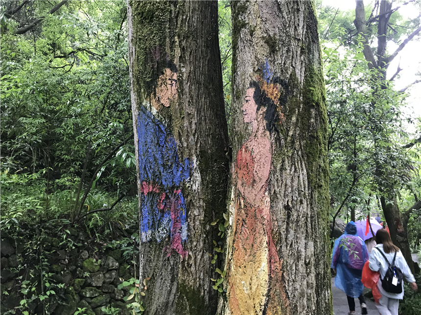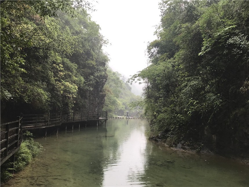 臨近潭底,雨仍未停歇,悶熱的雨衣讓大家分不清額頭上的水滴是汗水還是雨水。近3個小時的高低上下,生如逆旅,何奈紛雜煩憂,因為終點就在前方。累了,彈一彈鼻尖的汗水;揮起潭中的清泉,笑靨熠熠閃光;嘗一口隨手摘取的櫻桃,酸甜碰撞味蕾,不禁升起五味雜陣之感。我們返本還原為天地自然的孩子,當獨立于曠野之中,徜徉與無邊的山林之際,站在幽咽深泓的潭水之邊時,我們的心了卻了雜念,不知不覺中與天地融為一體……