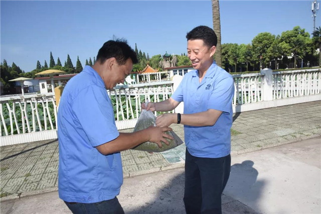 7月26號上午,驕陽似火,荊州水務集團黨委書記、總經(jīng)理石明望帶領(lǐng)副總經(jīng)理葛世玉、呂燕華、總經(jīng)理助理曾兵及工會副主席岳曉郁等人,頭頂烈日,分別前往三個水廠、6個供水營業(yè)網(wǎng)點、5個工程施工現(xiàn)場以及灘橋、鑼場鄉(xiāng)鎮(zhèn)供水服務站看望慰問了高溫下奮戰(zhàn)一線的供水員工,為他們送去了綠豆、白糖、純水等防暑降溫用品,讓員工們能在炎炎夏日感受到來自水務大家庭的點滴關(guān)懷與絲絲清涼。