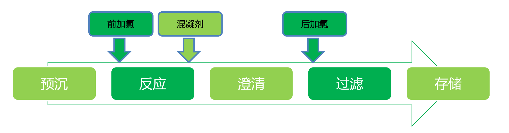 常規(guī)制水工藝:混凝、沉淀、過濾、消毒〖優(yōu)點(diǎn):生產(chǎn)便捷,成本更低〗