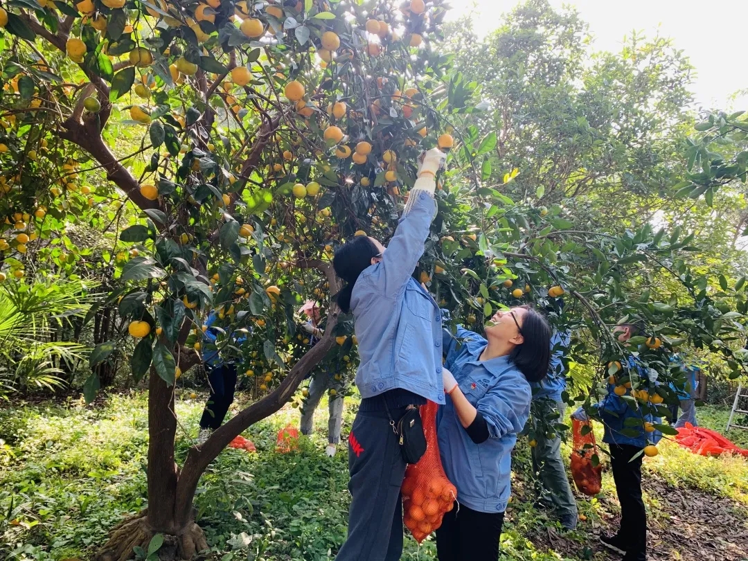 大家被分為標(biāo)簽組、采摘組和裝果組。采摘現(xiàn)場(chǎng),個(gè)個(gè)情緒高漲,說(shuō)干就干!大家穿梭在一棵棵橘子樹(shù)中,貼標(biāo)、剪枝、運(yùn)輸、裝果一氣呵成,三個(gè)一組五個(gè)一群,攜手配合……忙碌的身影,歡樂(lè)的笑聲,為初冬的果園增添了無(wú)限生機(jī)。