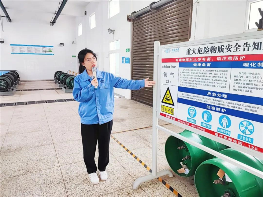 “氯氣與水反應(yīng)生成次氯酸,能對(duì)水起到殺菌消毒的作用……”正在做講解的是黨群工作部的張瀟,她深知安全生產(chǎn)的重要性,而作好宣傳工作,用手中的話筒將夢(mèng)想扎根在供水事業(yè)上,則是她對(duì)青春最美的期待。